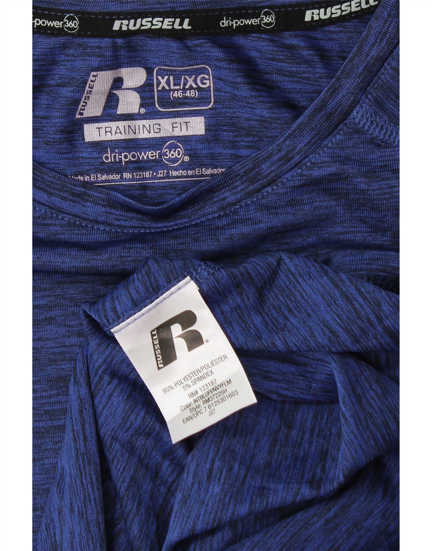 RUSSELL ATHLETIC Herren Dri-Power T-Shirt Top UK 46/48 XL Marineblau meliert
