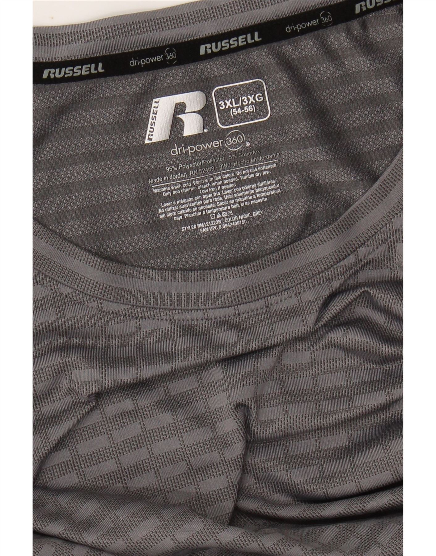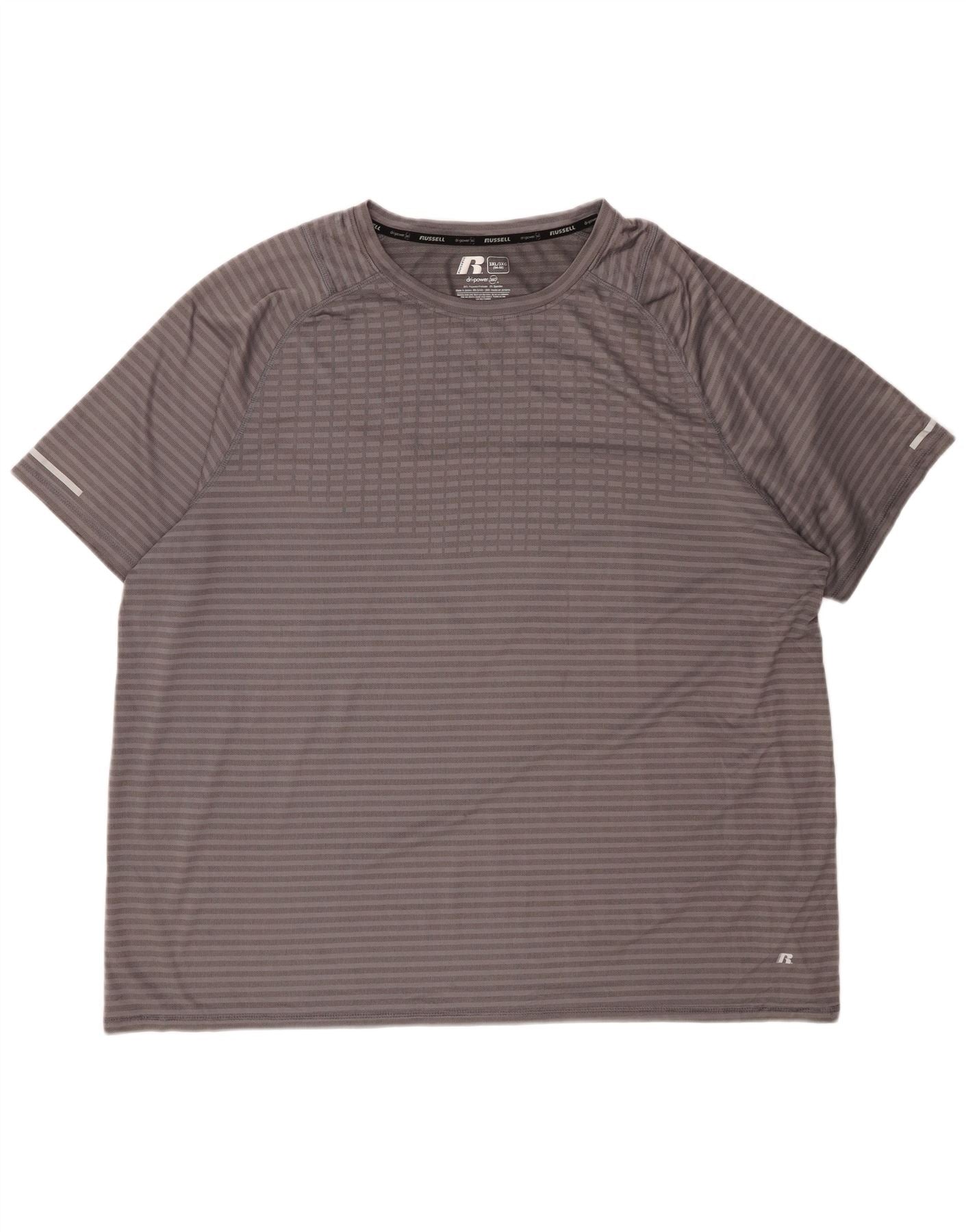 RUSSELL ATHLETIC Mens Dri-Power T-Shirt Top UK 54/56 3XL Grey Striped