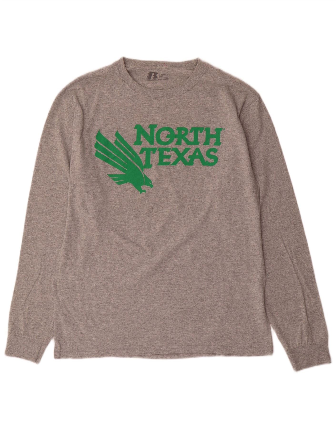Russell Athletic Herren-Grafikoberteil, langärmlig, UK 38/40, mittelgraue Baumwolle