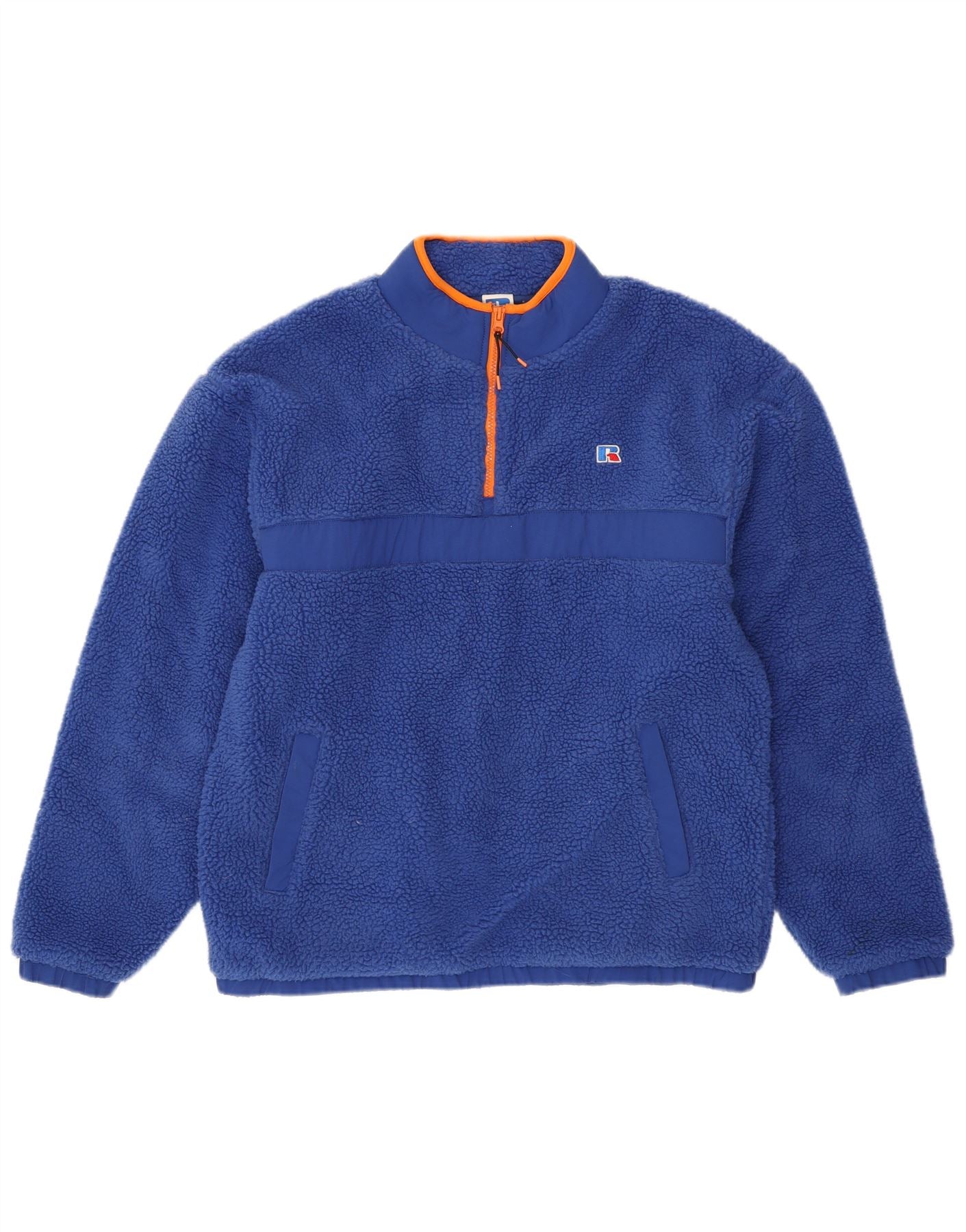 RUSSELL ATHLETIC Herren-Fleecepullover mit Reißverschluss am Hals, mittelblaues Polyester