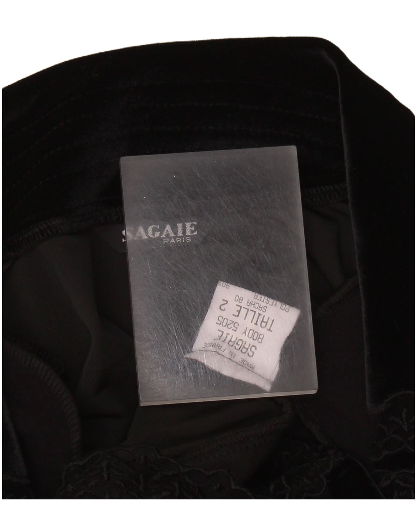 SAGAIE Damen-Body aus Samt, langärmelig, UK 12, Mittelschwarz, Polyester