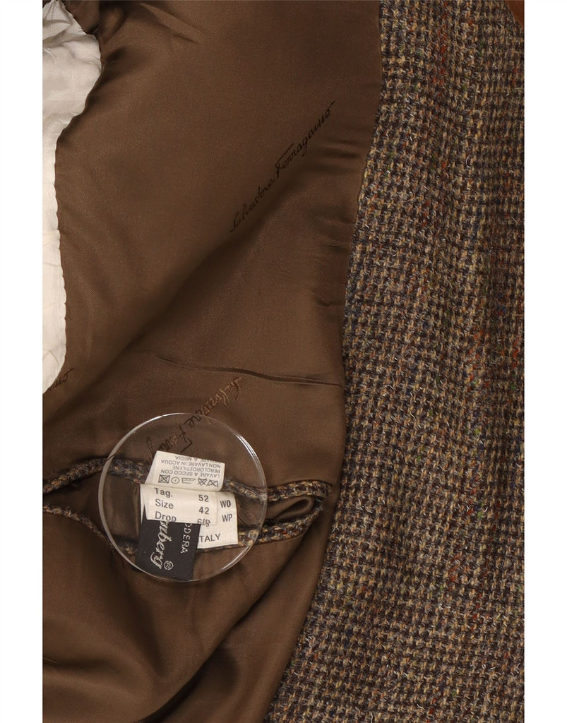 SALVATORE FERRAGAMO Mens Blazer Jacket UK 42 XL Brown Check Classic
