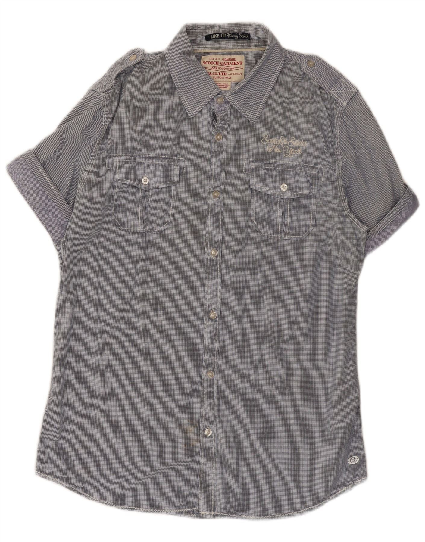 SCOTCH & SODA Herren-Kurzarm-Militärhemd, groß, blaues Gingham-Baumwolle
