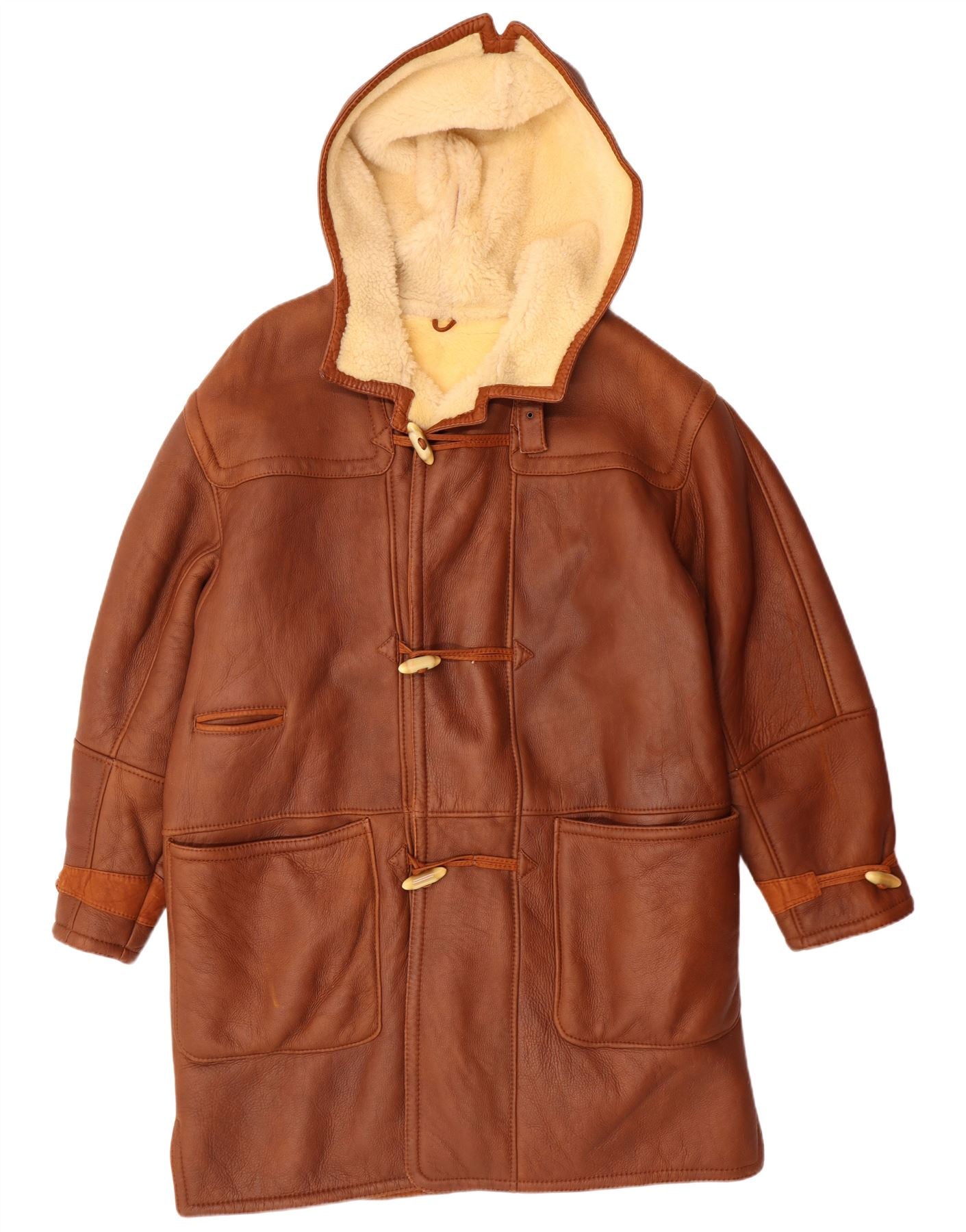 SCOUT Herren-Dufflecoat aus Shearling mit Kapuze, UK 40, Größe L, brauner Shearling
