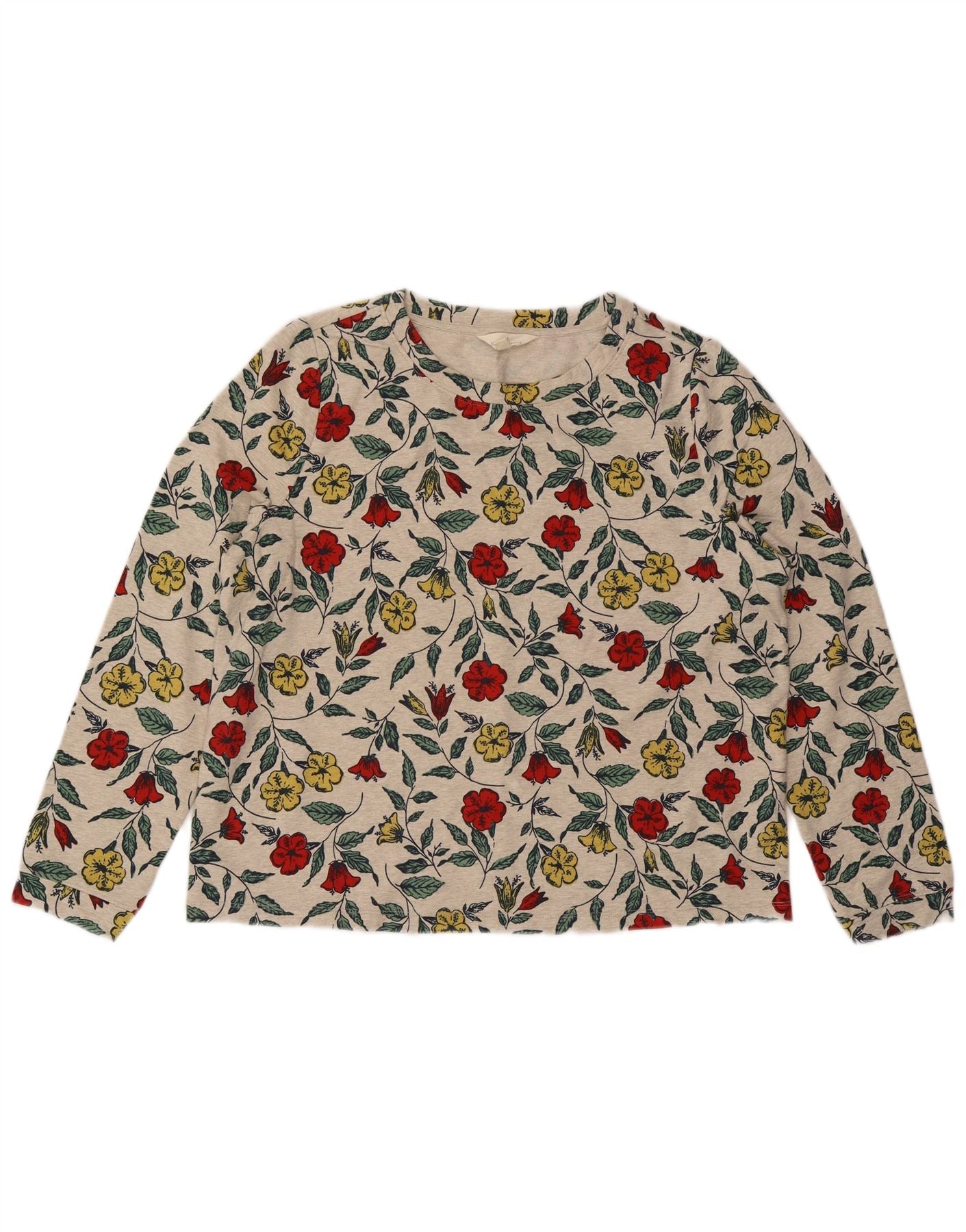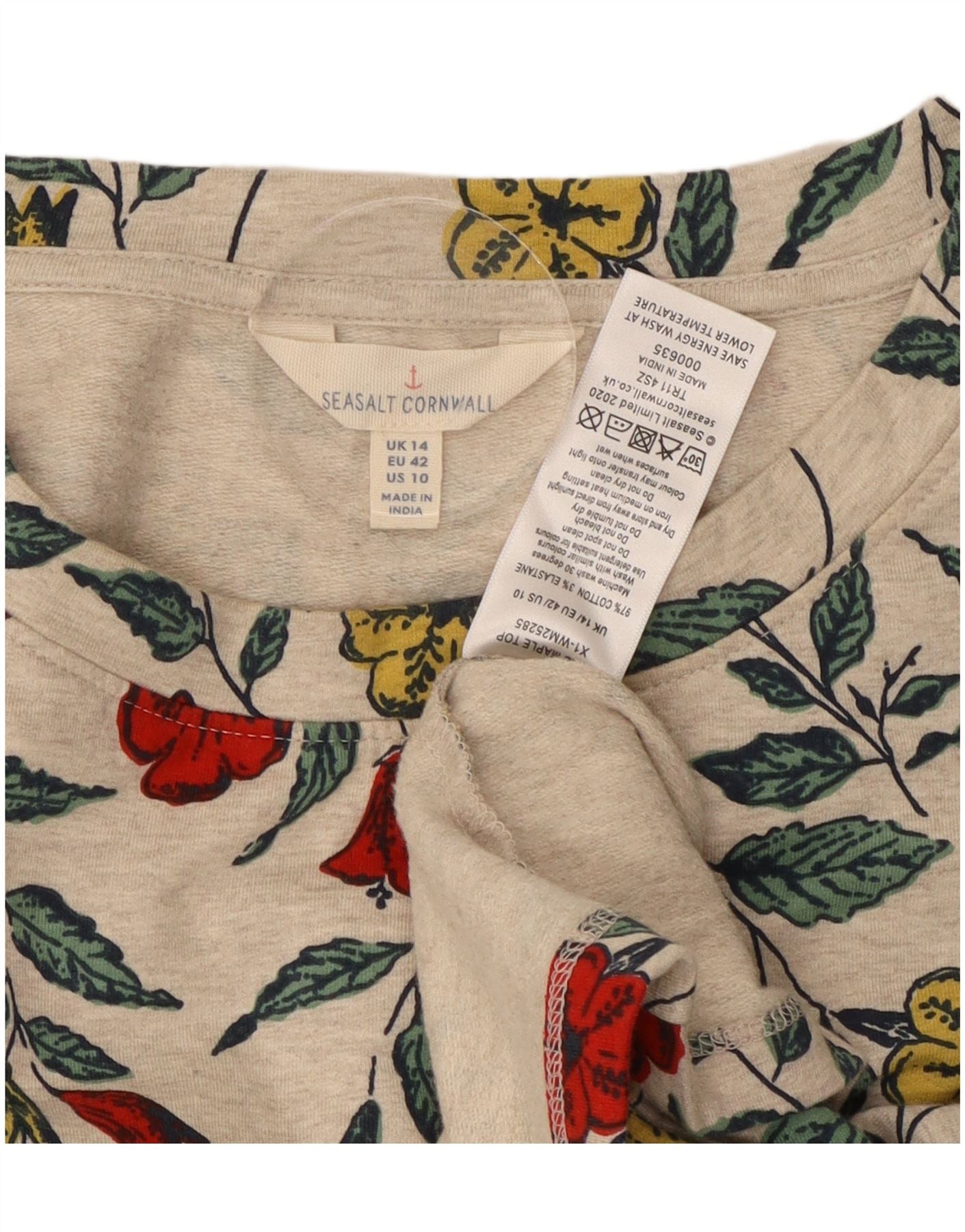 SEASALT CORNWALL Womens Graphic Top Long Sleeve UK 14 Large Grey Floral