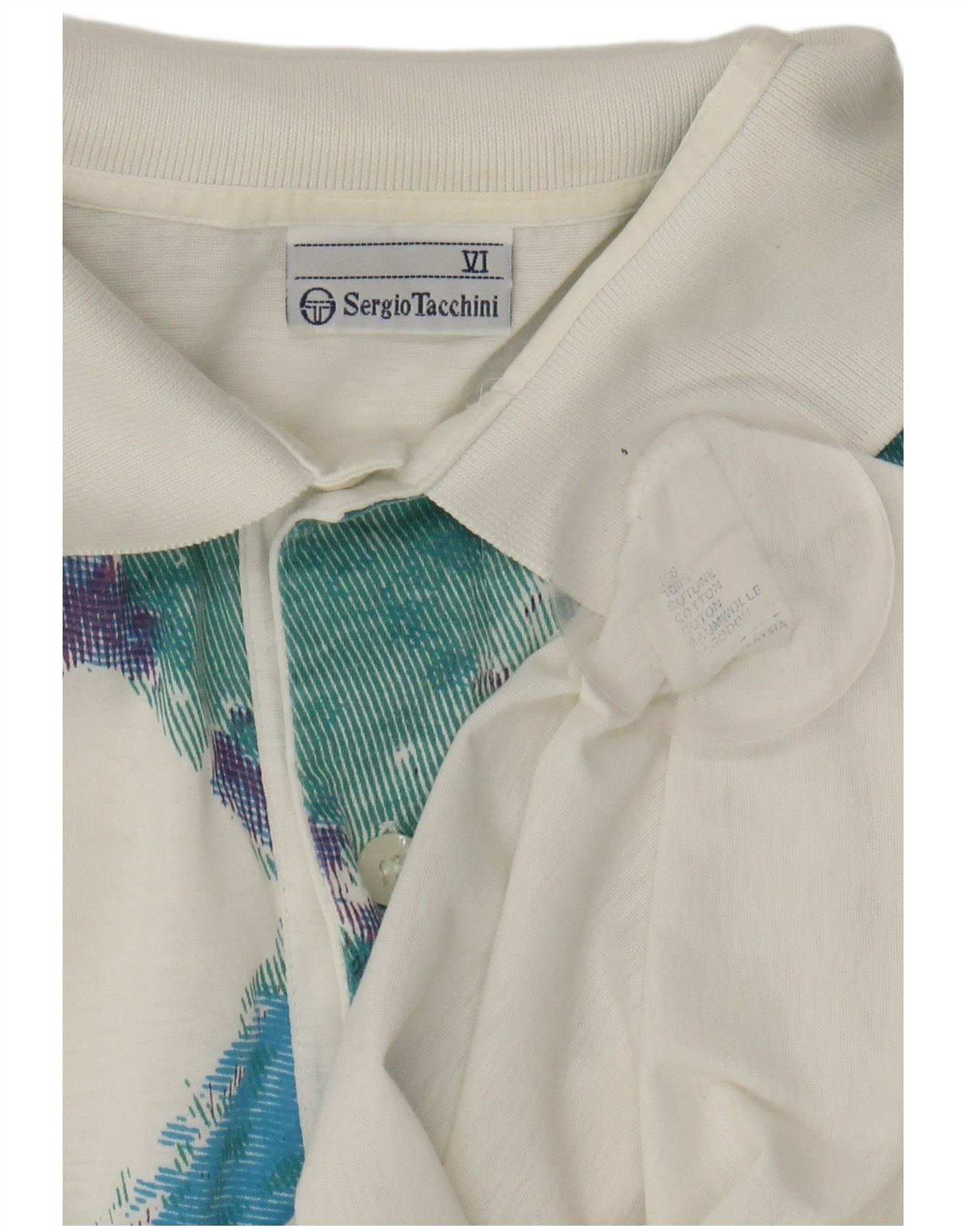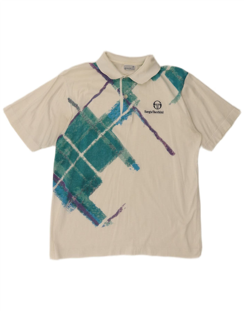 SERGIO TACCHINI Mens Polo Shirt Large White Colourblock Cotton