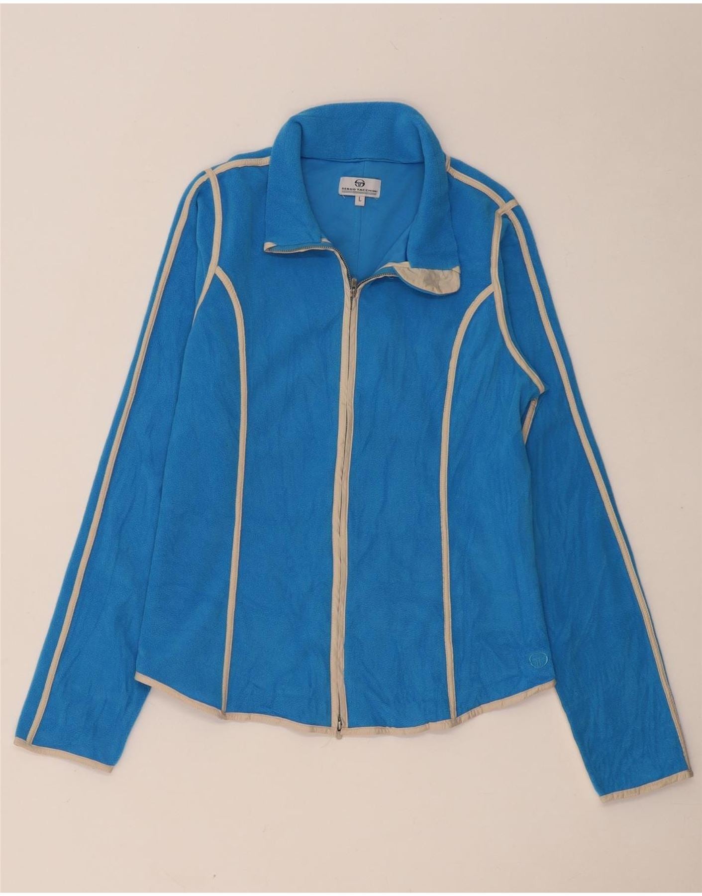 SERGIO TACCHINI Damen Fleecejacke UK 14 Großes blau gestreiftes Polyester