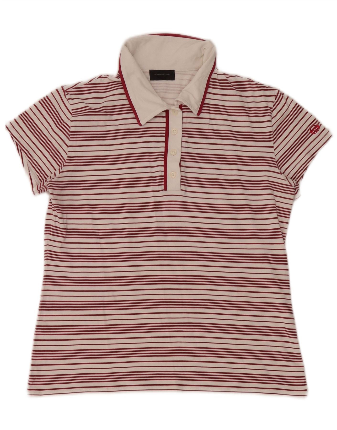 SERGIO TACCHINI Damen Poloshirt IT 48 XL Rot gestreifte Baumwolle
