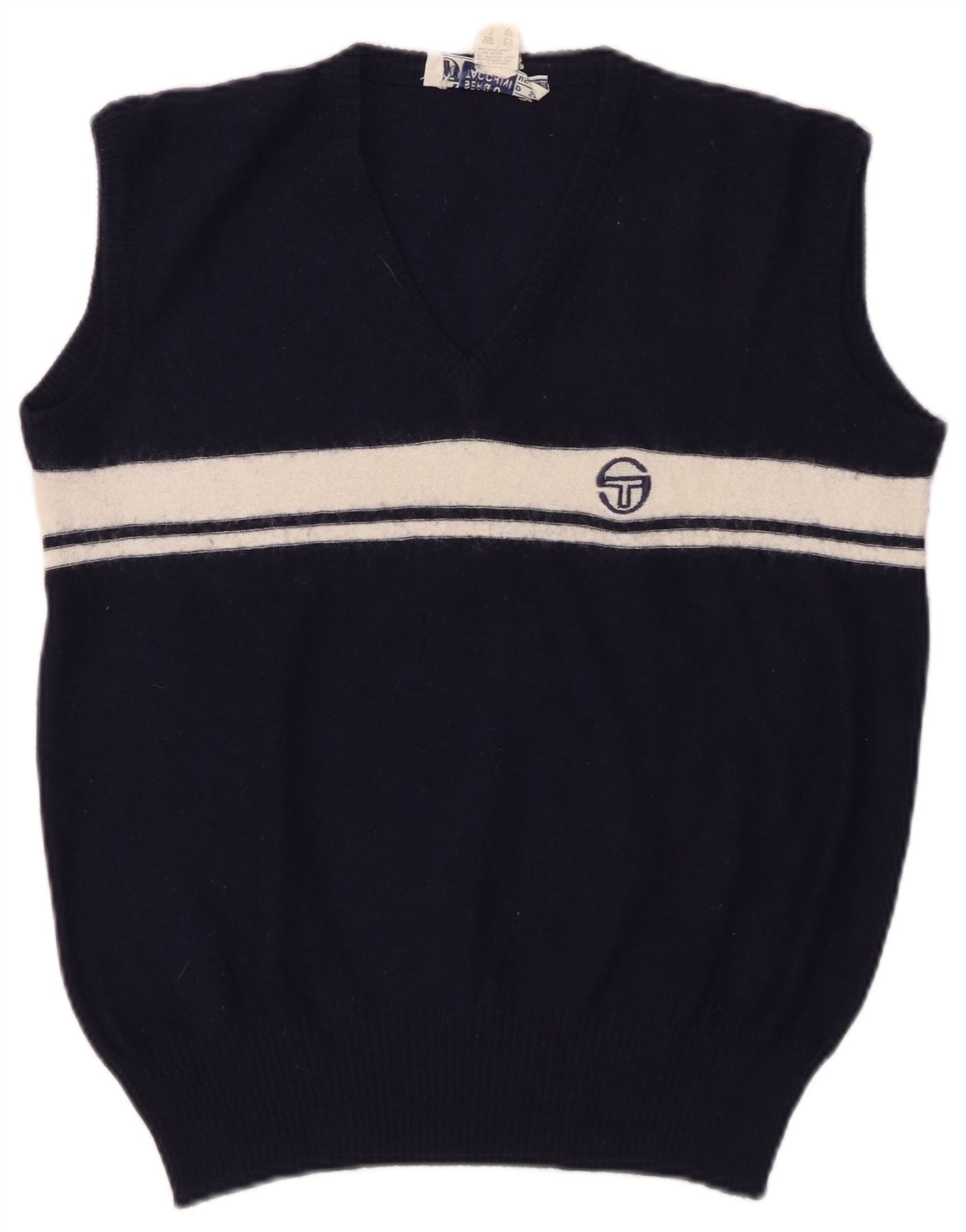 SERGIO TACCHINI Damen Weste Tank Top UK 14 Medium Marineblau gestreift Wolle