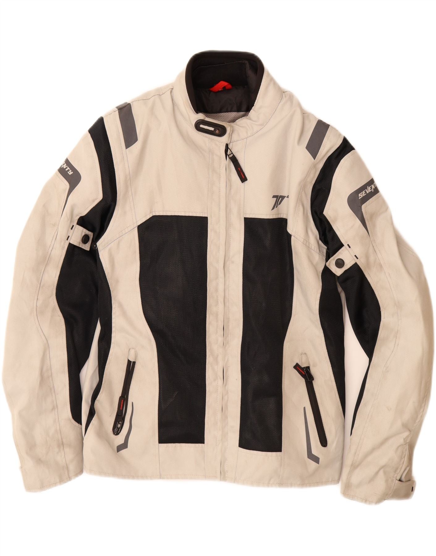 SEVENTY Herren Graphic Racer Jacke UK 36 Small Graues Colourblock-Polyester