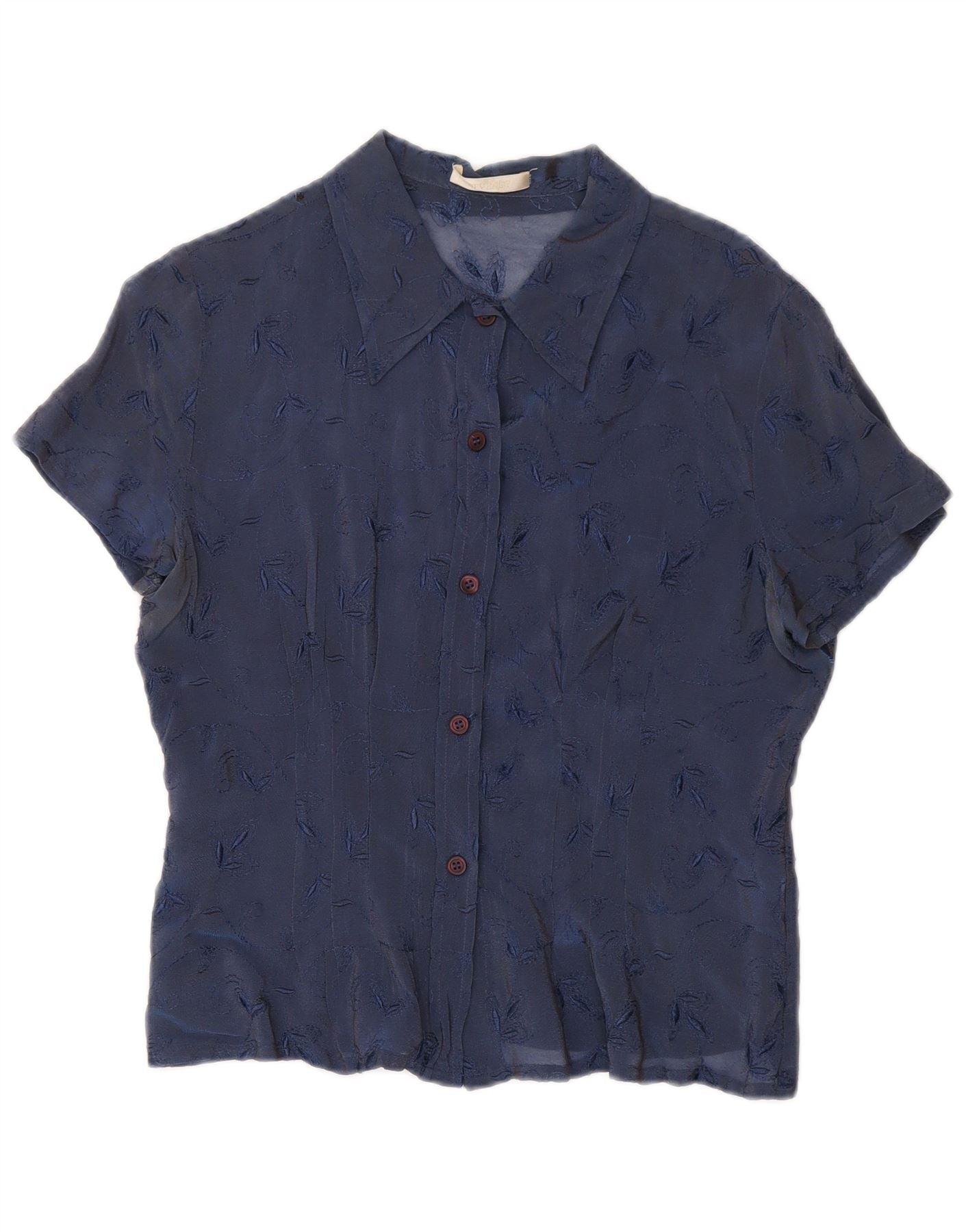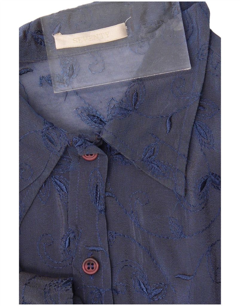 SEVENTY Durchsichtige Damen-Hemdbluse, UK 12, mittleres Marineblau mit Blumenmuster