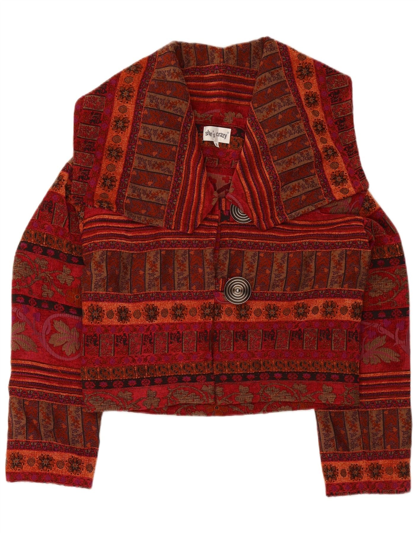 SHE'S CRAZY Damen Crop Oversized Blazer Jacke US 2 XS Burgundy Floral