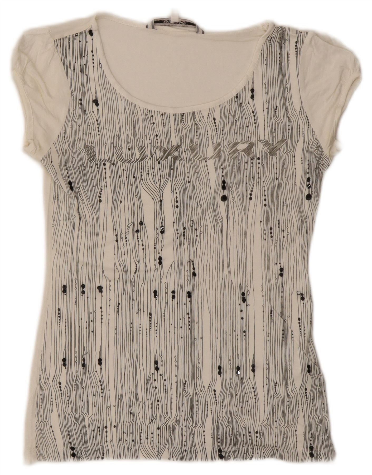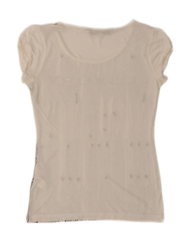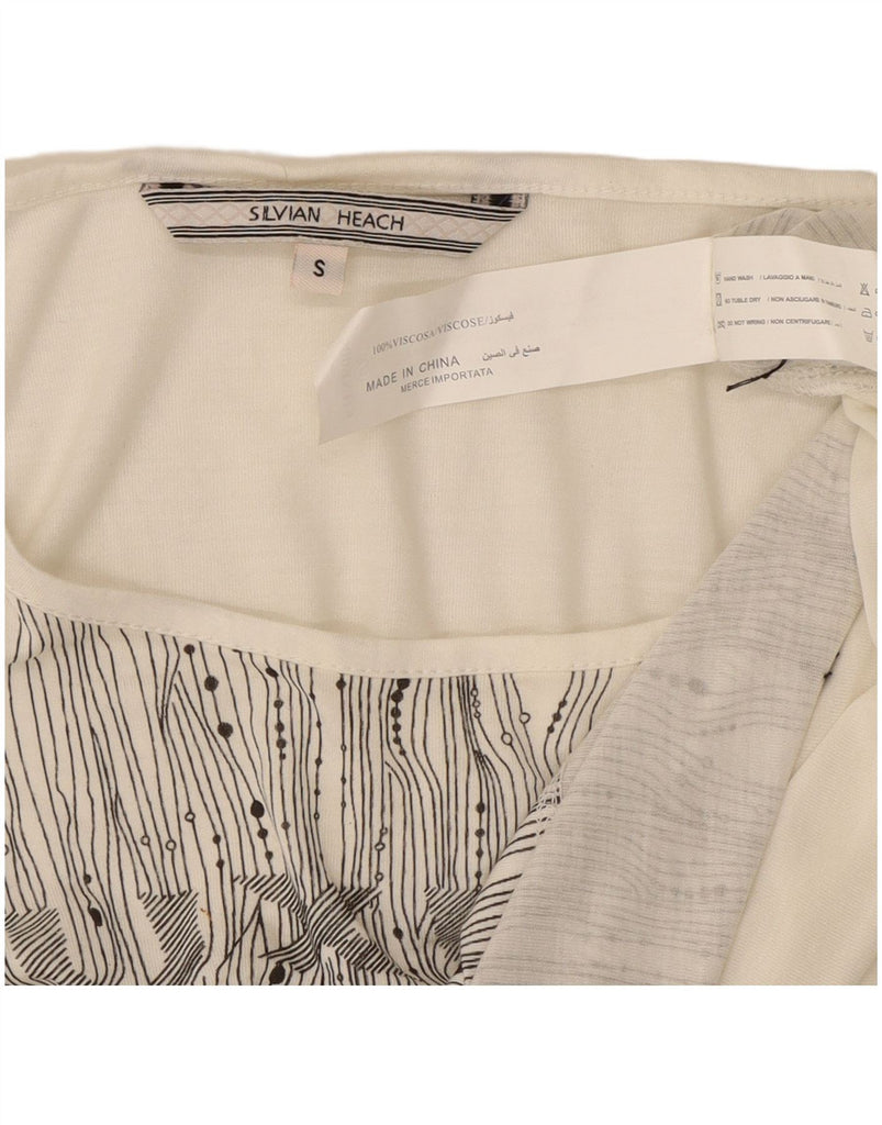 SILVIAN HEACH Damen Grafik-T-Shirt Top UK 10 Small Weiß Geometrisch