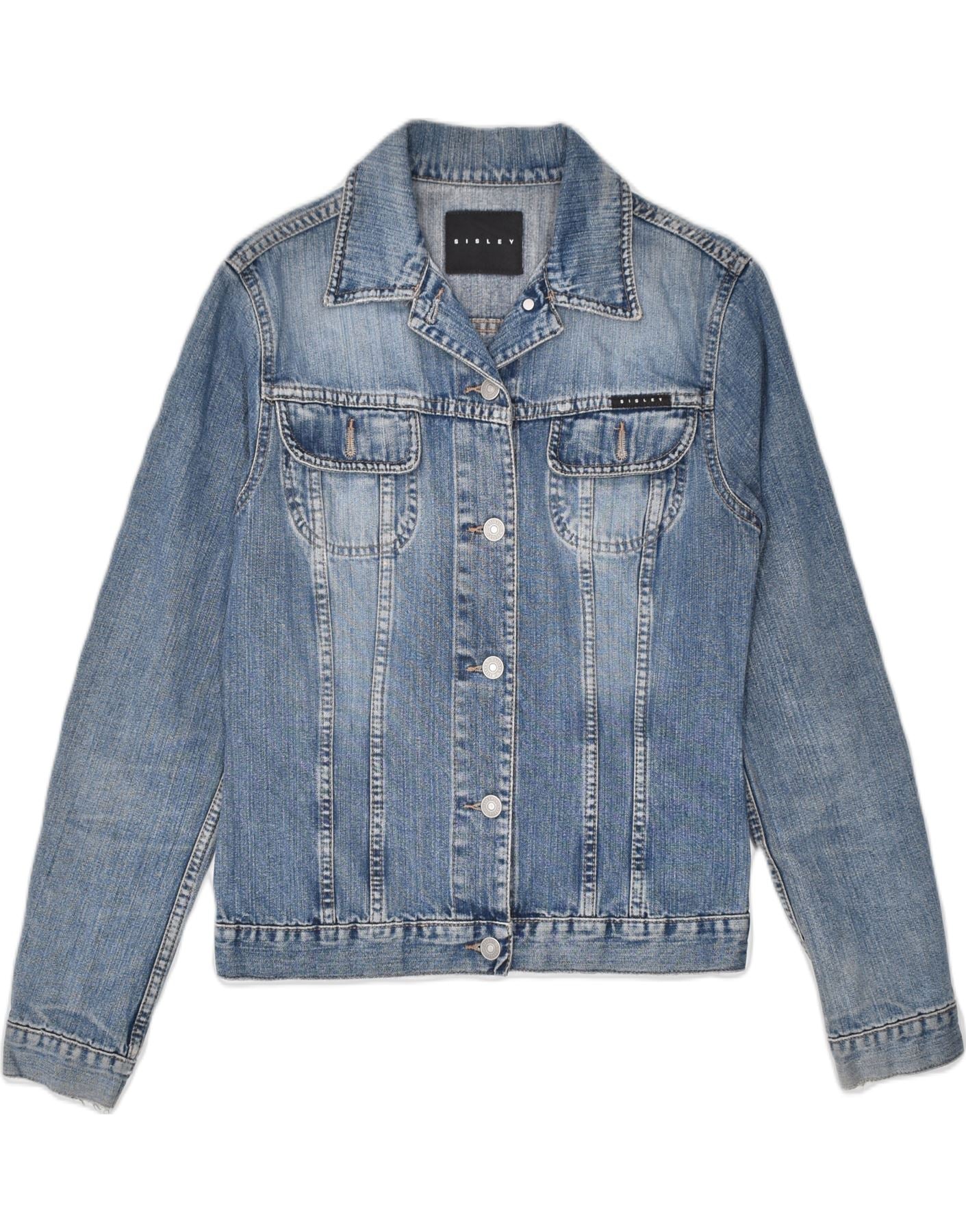 SISLEY Damen Jeansjacke UK 10 Small Blaue Baumwolle