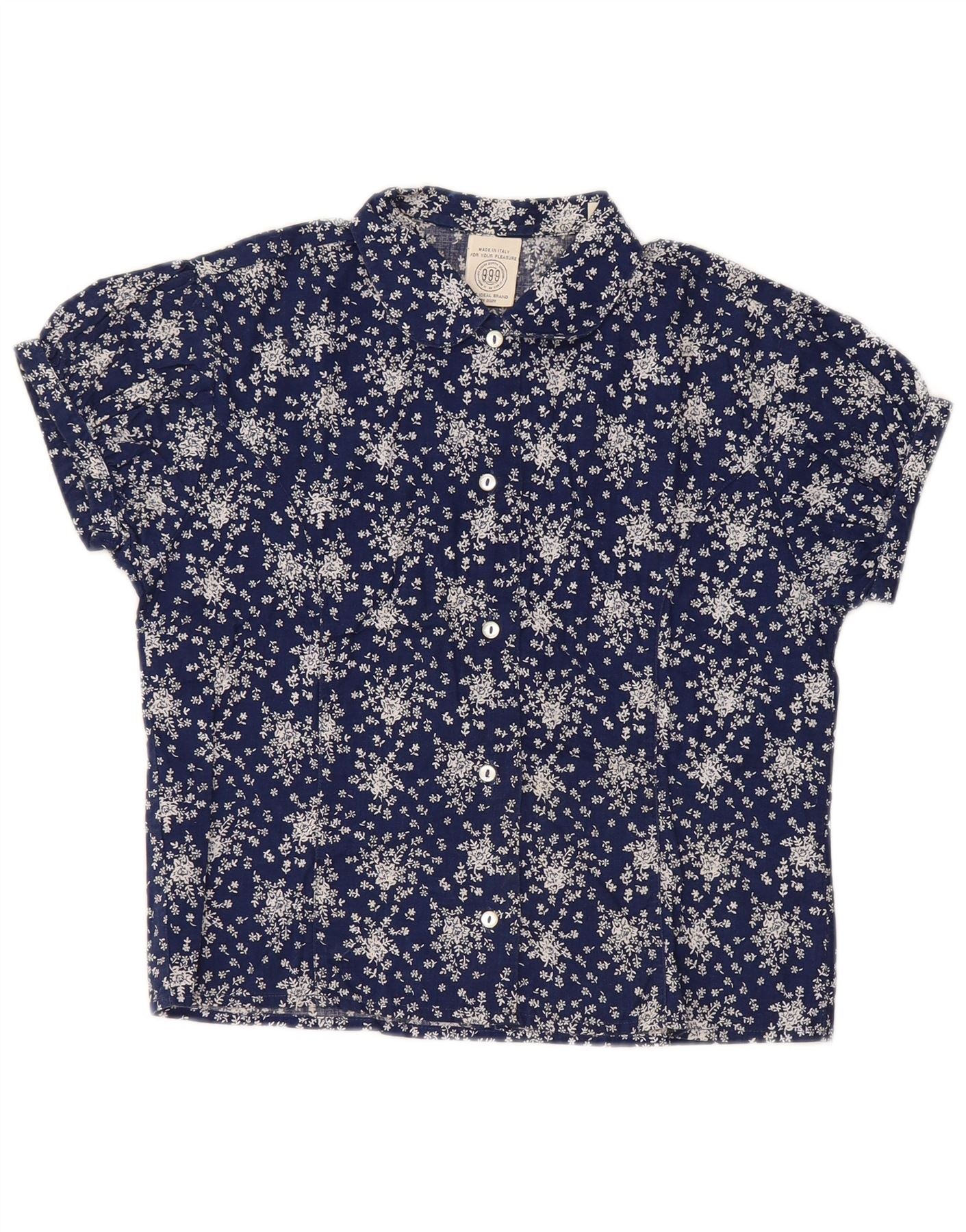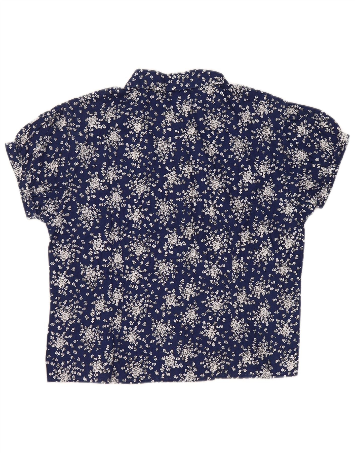 SISLEY Crop Kurzarm-Hemdbluse für Damen, UK 14, Größe L, Marineblau mit Blumenmuster