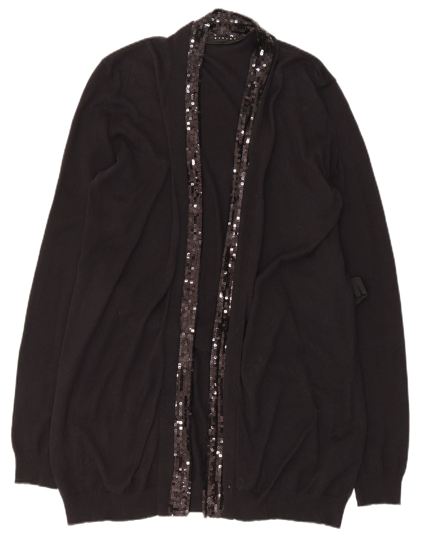 Sisley Offener Damen-Cardigan-Pullover UK 14 Große schwarze Baumwolle