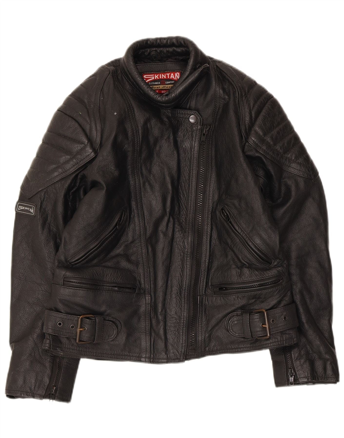 SKINTAN Damen Leder Racer Jacke UK 10 Small Schwarzes Leder