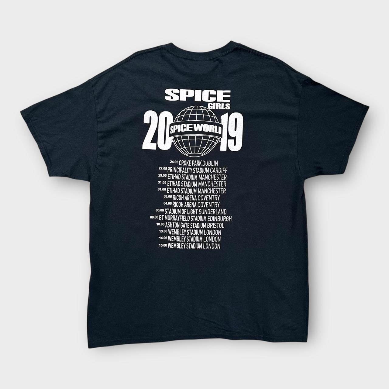 Spice Girls „Spic World“ Musik-T-Shirt zur UK-Tour 2019 in Schwarz mit Grafikdruck auf der Brust und hinten auf einem Gildan-Etikett