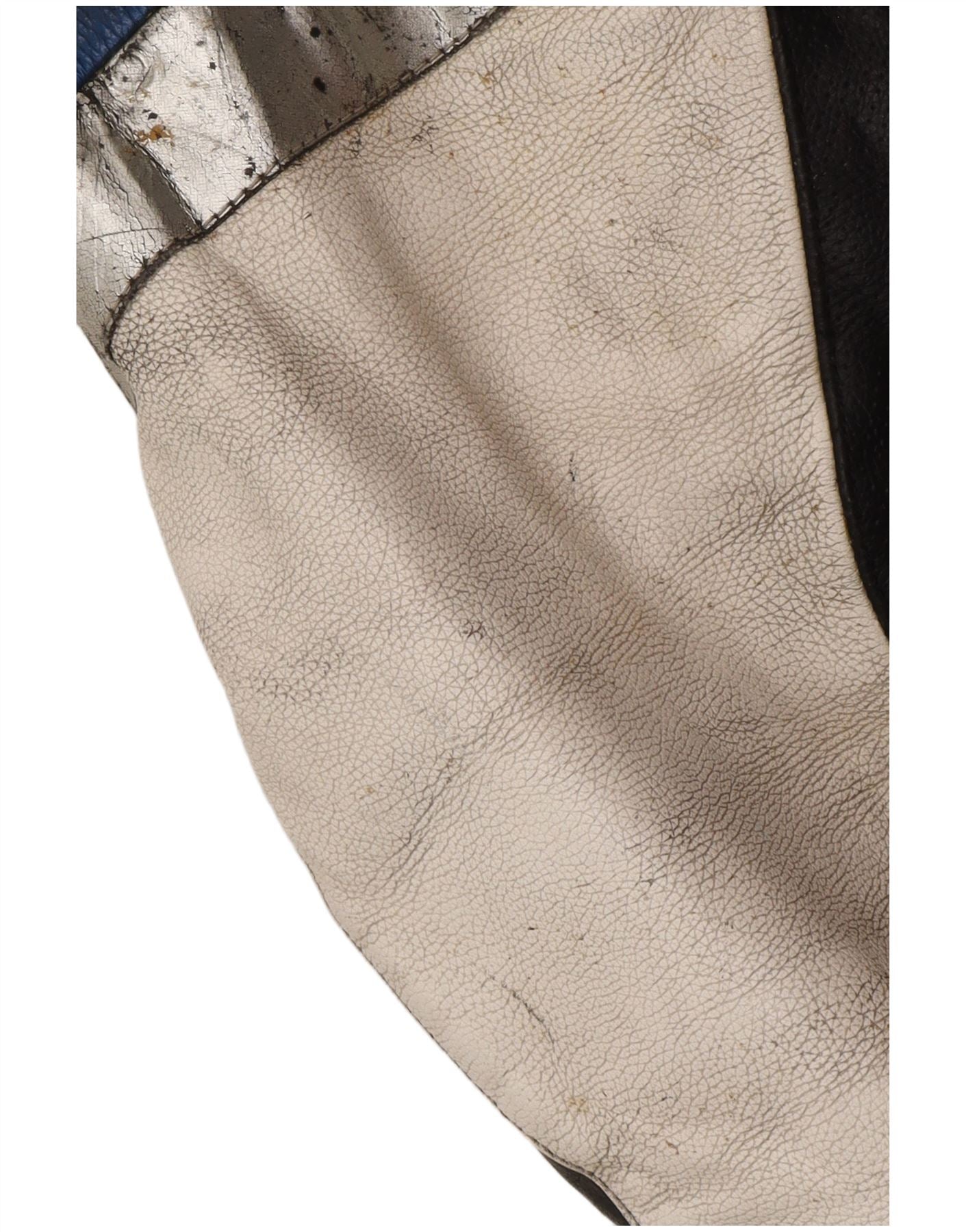 • KI-Beschreibung: Diese Herren-Bikerjacke von Spidi ist aus strapazierfähigem Leder gefertigt und weist ein auffälliges Farbblockmuster auf. Es kombiniert schwarze, blaue, weiße und silberne Paneele für einen dynamischen Look. Der Kragenausschnitt und der durchgehende Reißverschluss sorgen für einen klassischen Moto-Racer-Stil. Lange Ärmel und eine normale Passform sorgen für Komfort und Schutz. Gepolsterte Bereiche und Reißverschlusstaschen sorgen für praktische Details. Markante Logos runden die authentische Motorrad-Ästhetik ab.