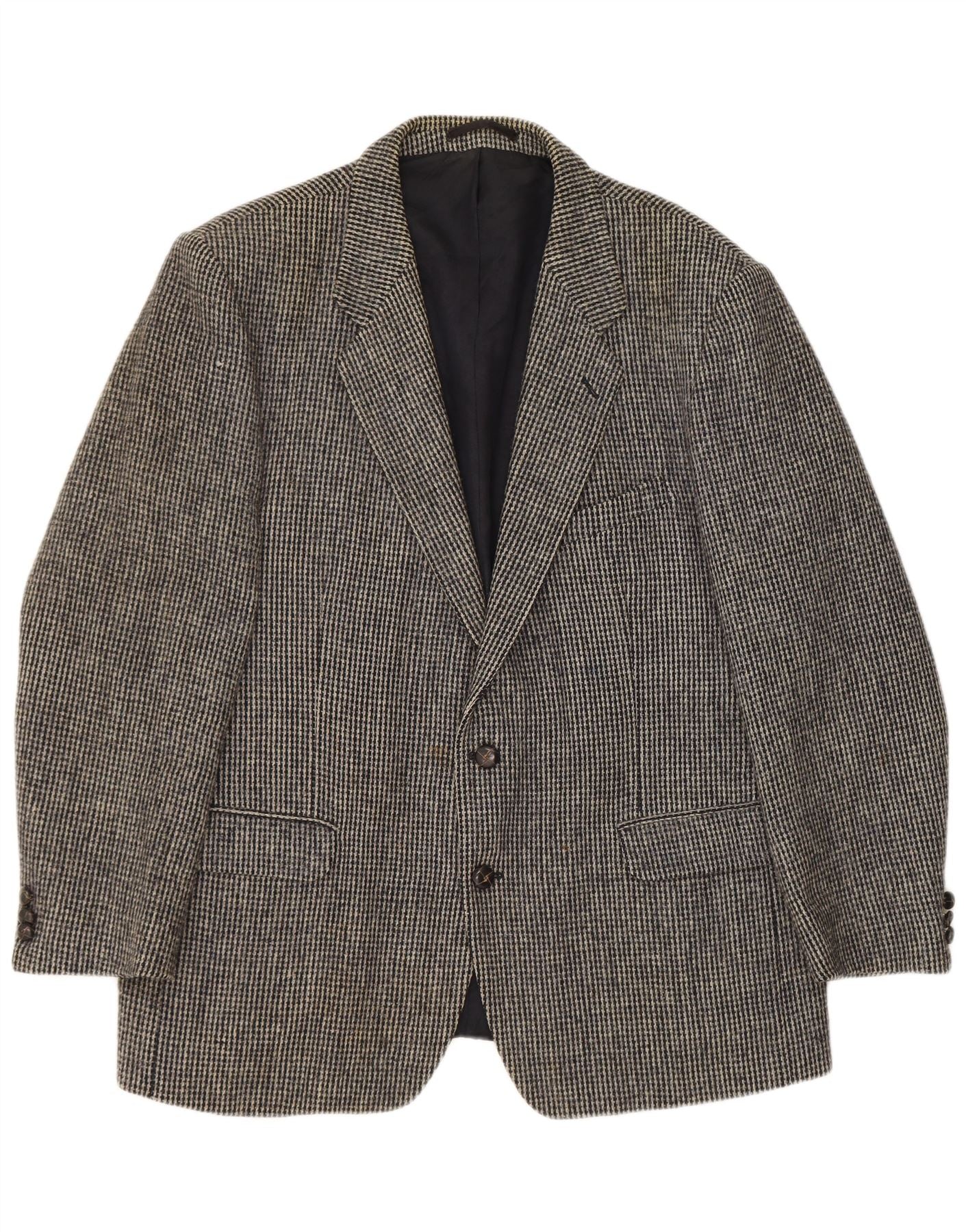 ST MICHAEL Mens Harris Tweed Blazer Jacket UK 40 Large Grey Houndstooth