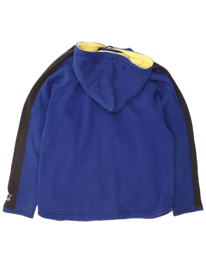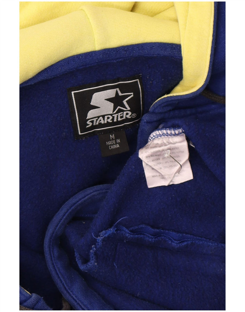STARTER Herren-Kapuzenpullover mit Knopfkragen, mittelblaue Farbblock-Baumwolle