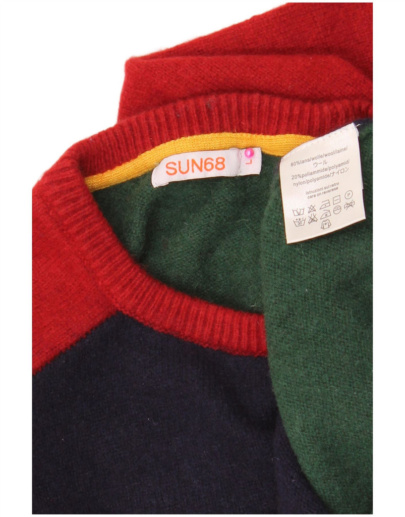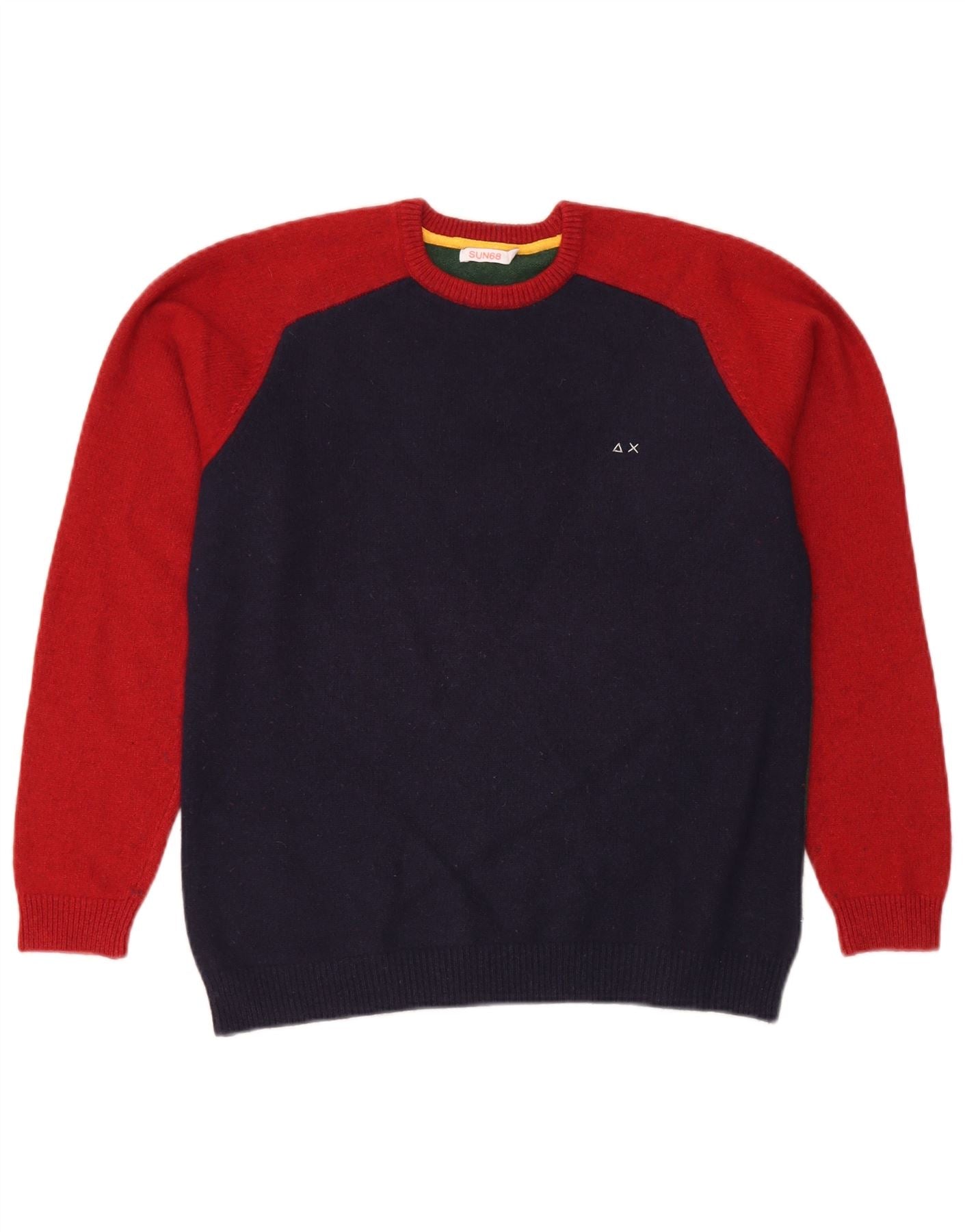 SUN68 Damen-Pullover mit Rundhalsausschnitt, UK 16, Größe L, Marineblau, Farbblock