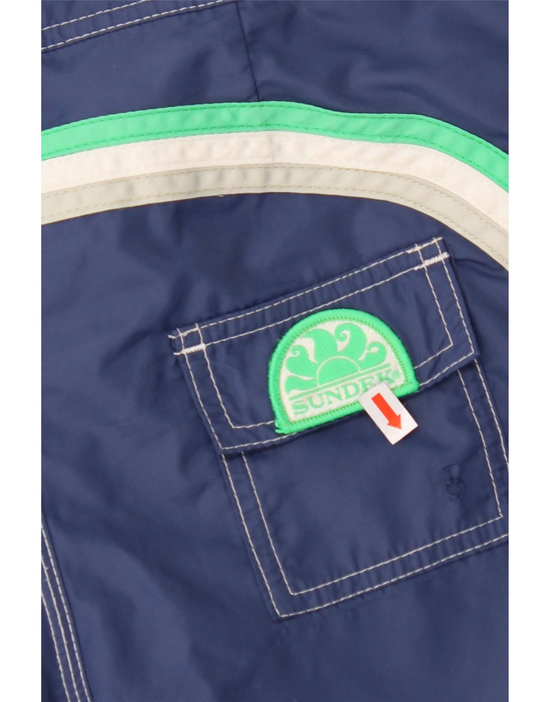 SUNDEK Badeshorts für Jungen, 9–10 Jahre, marineblau gestreiftes Nylon
