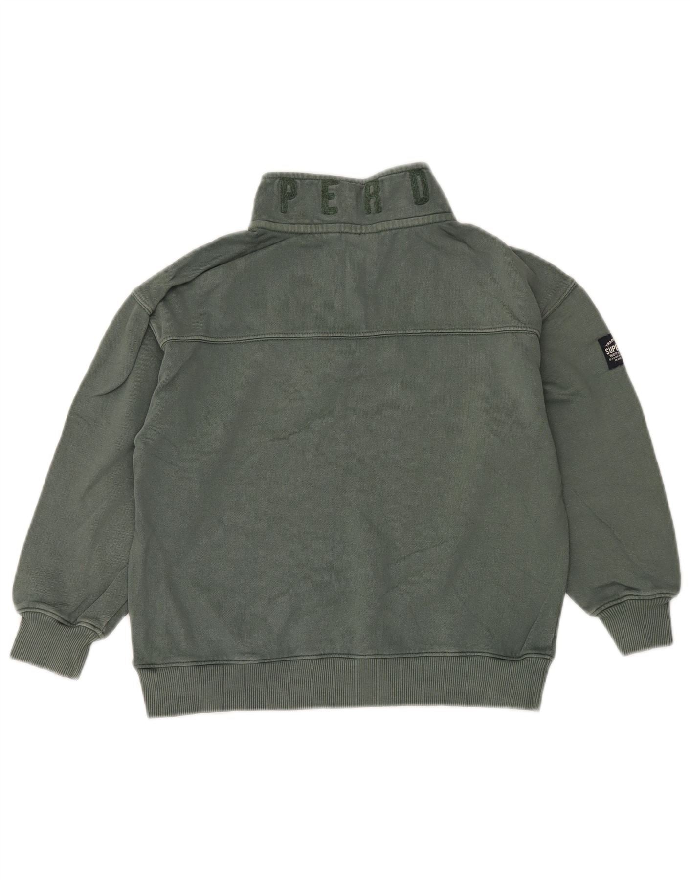 SUPERDRY Jungen-Sweatshirt mit grafischem Reißverschluss am Kragen, 7–8 Jahre, grüne Baumwolle