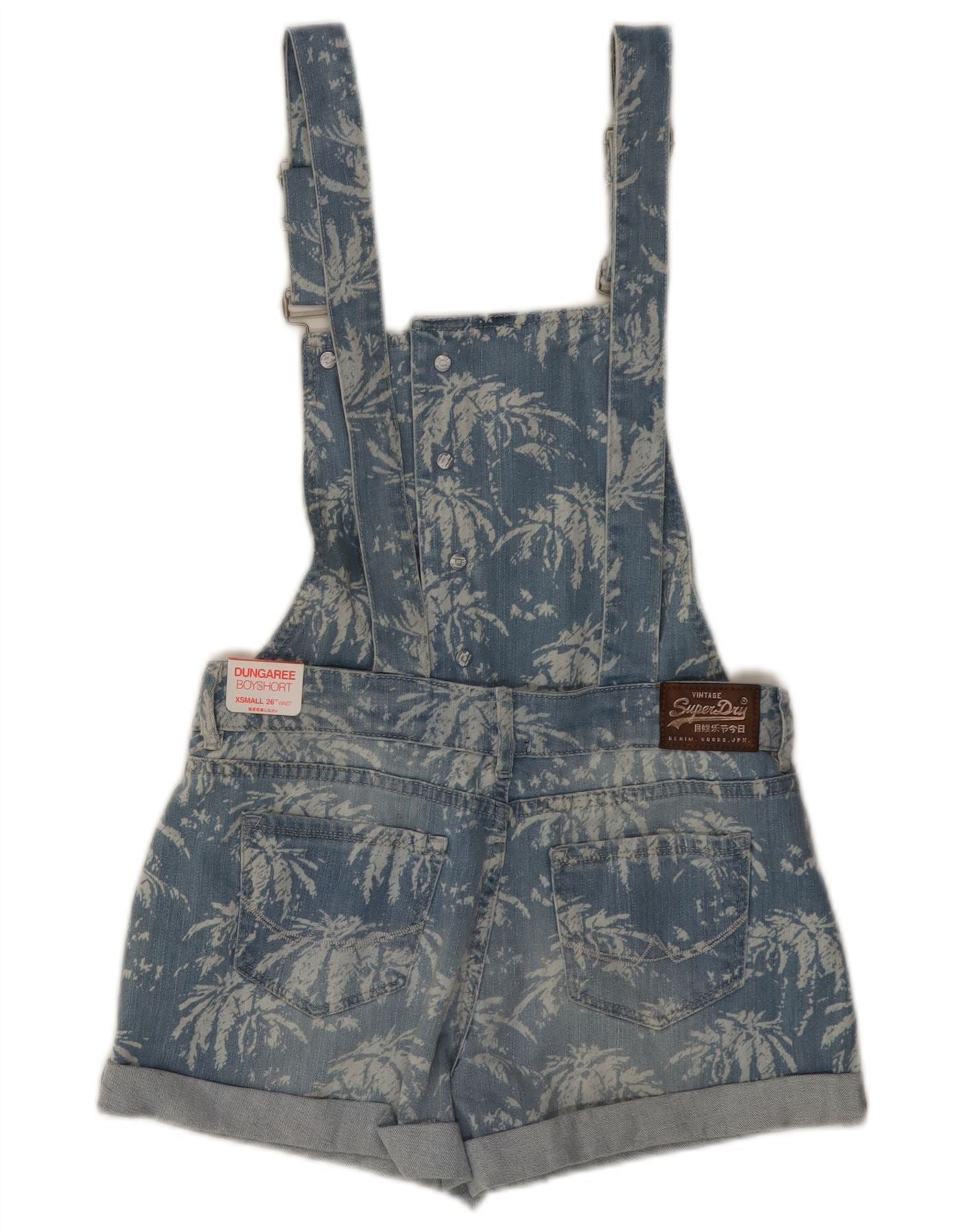 SUPERDRY Mädchen-Latzhose, Denim-Shorts, 11–12 Jahre, XS, blau geblümt, Baumwolle