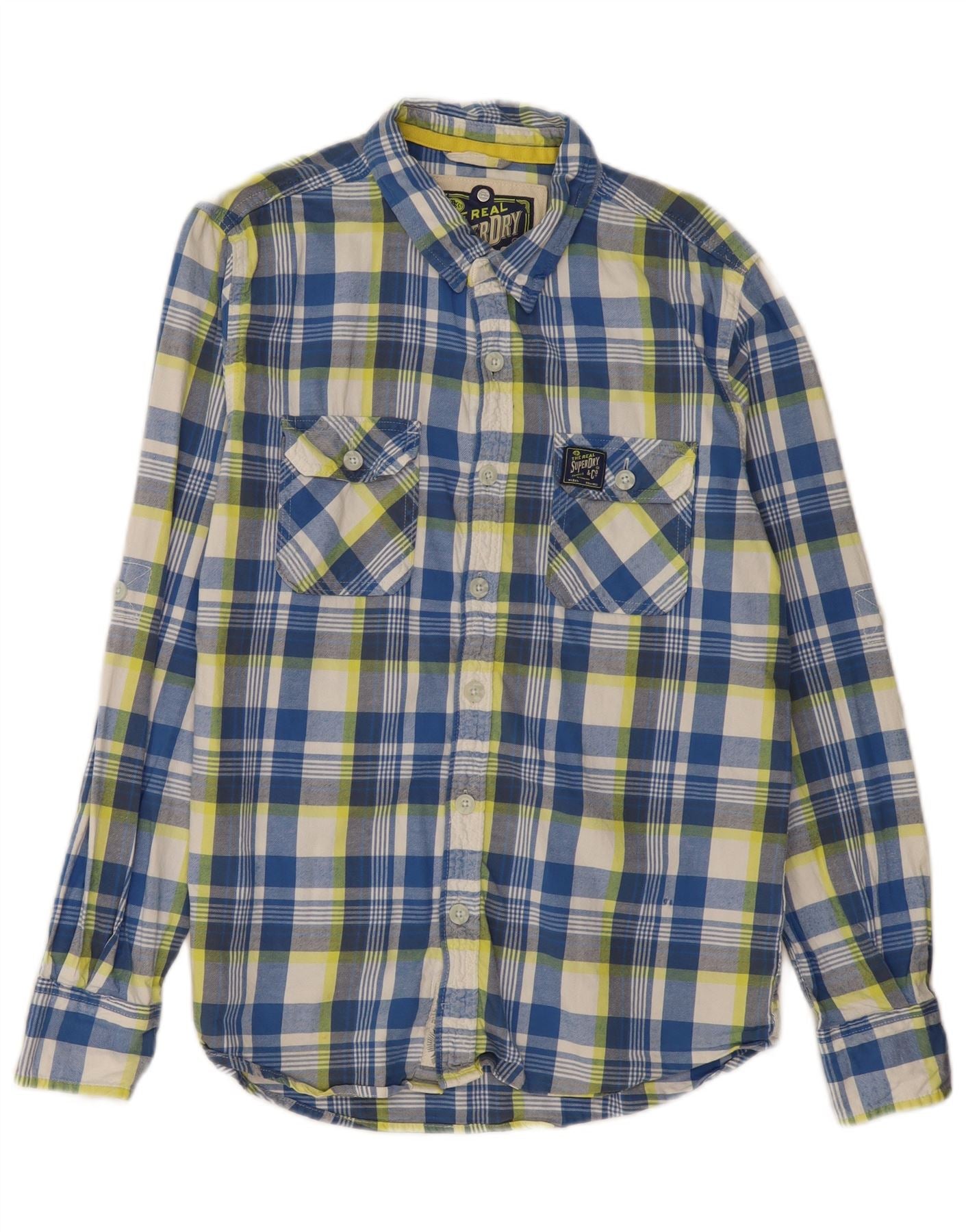 SUPERDRY Herren-Klassiker-Flanellhemd XL, blau kariert, Baumwolle