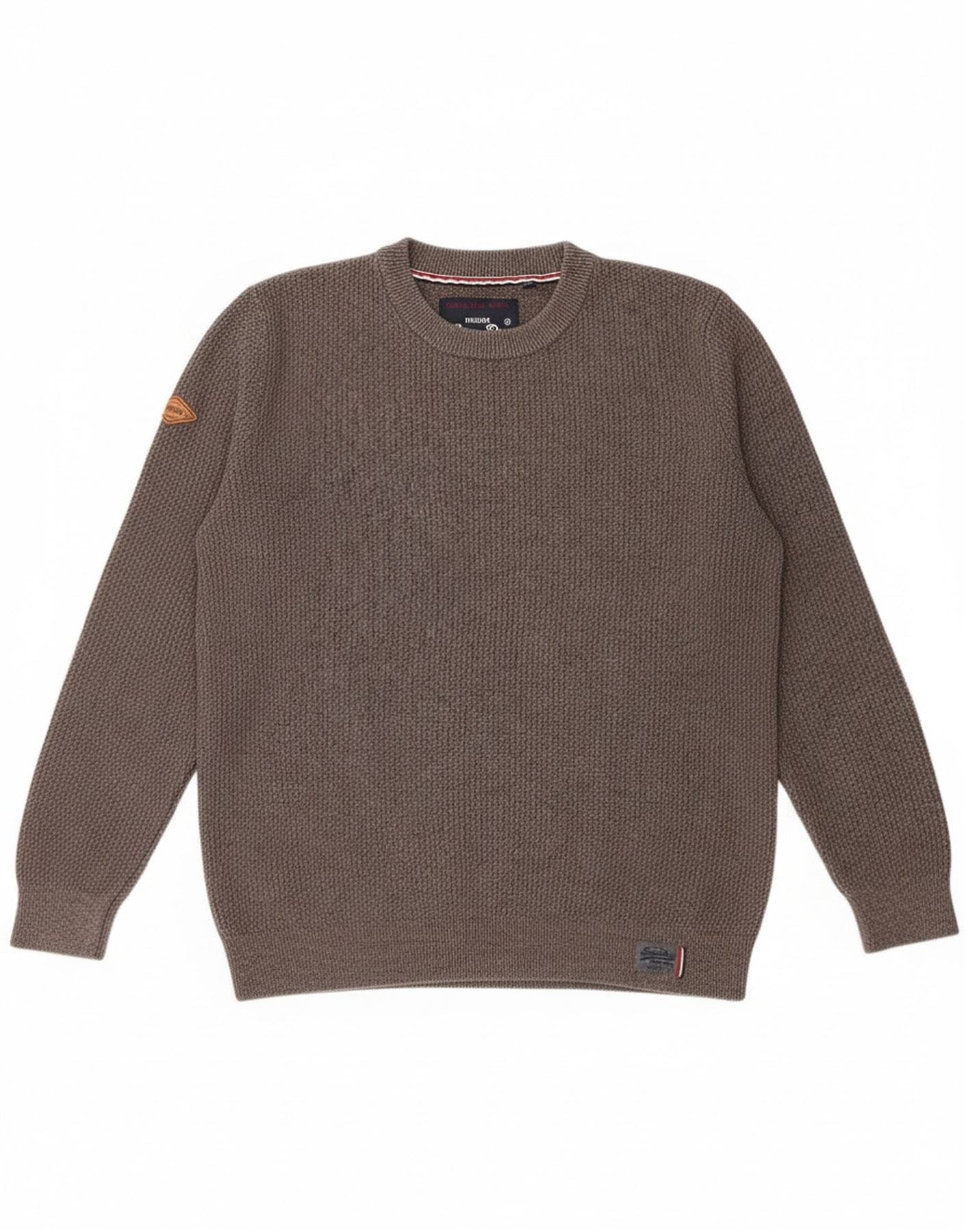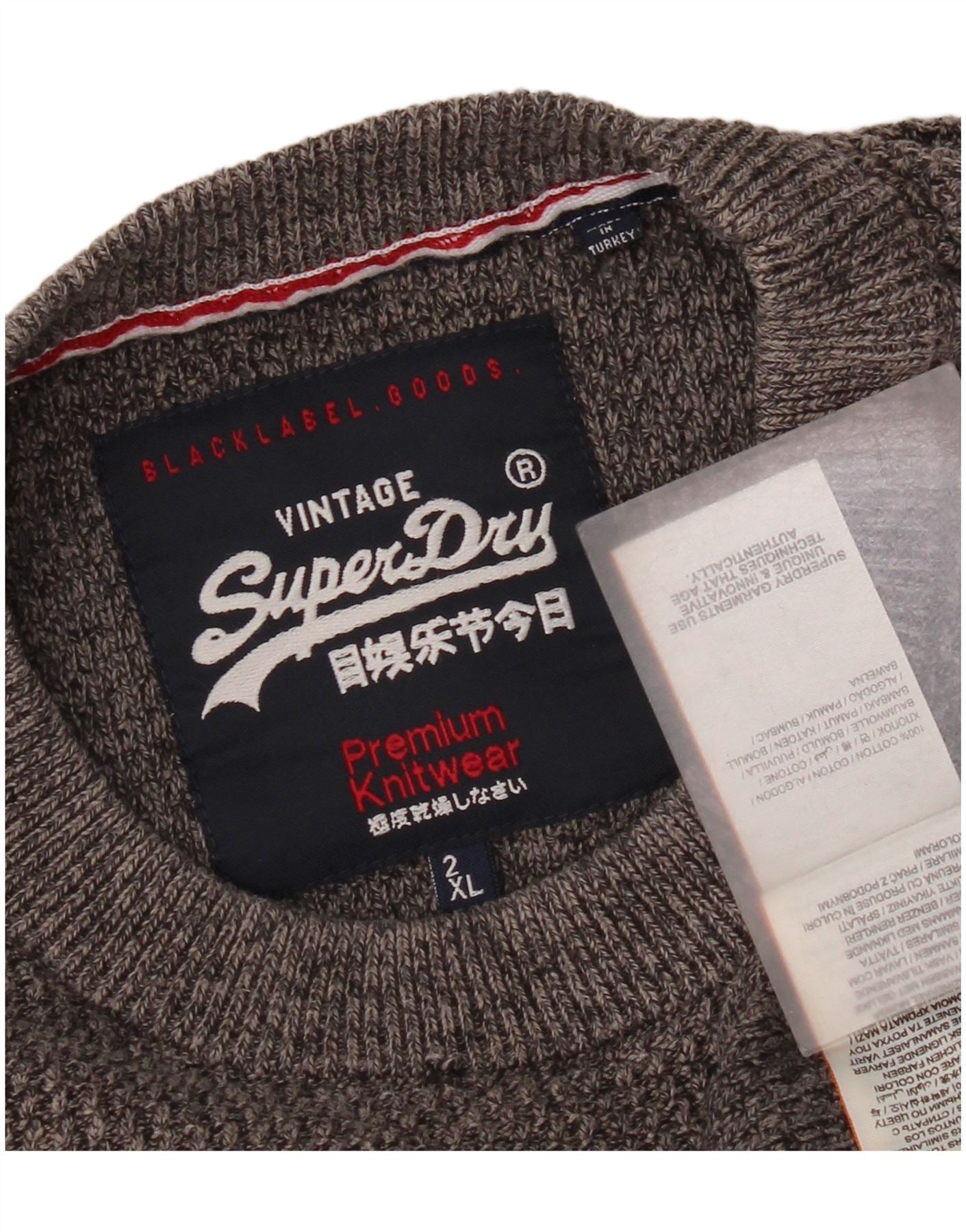 Superdry Herren-Pullover mit Rundhalsausschnitt, Größe 2XL, graue Baumwolle