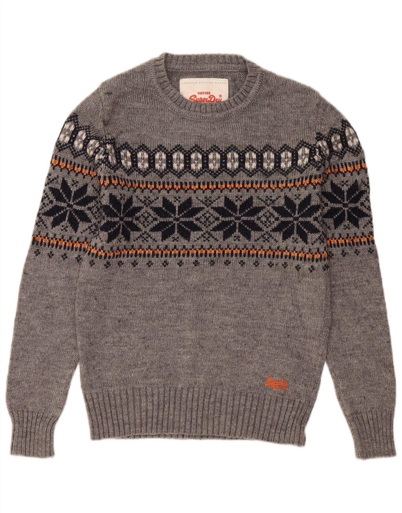 Superdry Herren-Pullover mit Rundhalsausschnitt, Größe S, Grau, Fair-Isle-Acryl