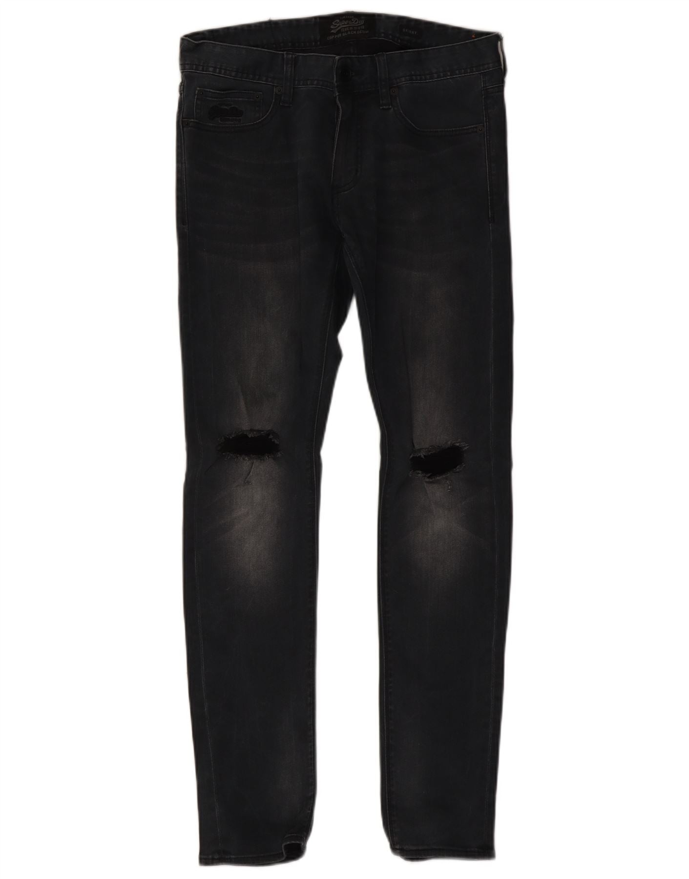 SUPERDRY Herren Distressed Skinny Jeans W32 L32 Schwarze Baumwolle