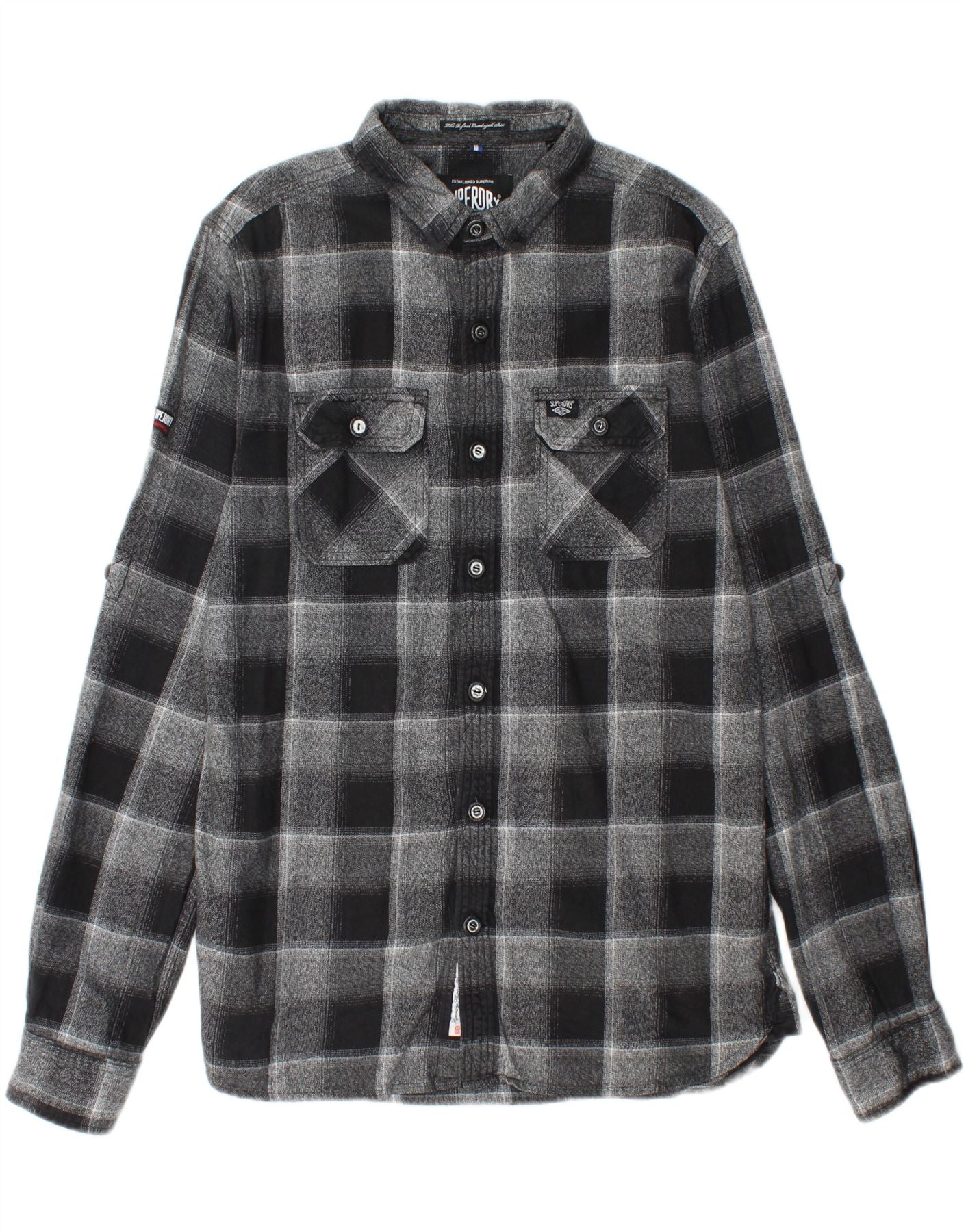 SUPERDRY Herren-Flanellhemd XL, grau karierte Baumwolle