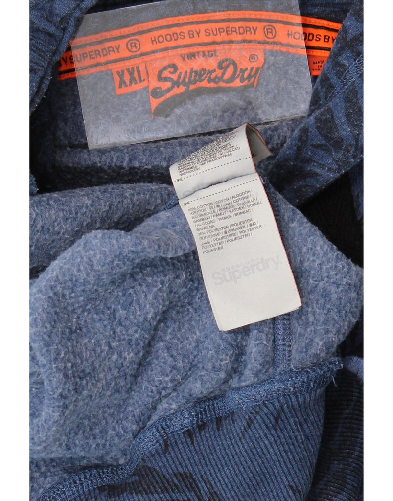 SUPERDRY Mens Graphic Hoodie Jumper 2XL Navy Blue Floral Cotton