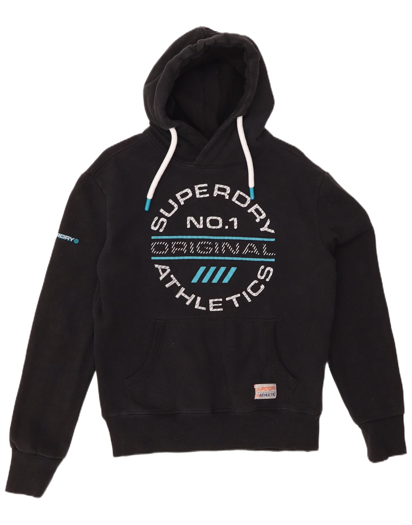 SUPERDRY Herren-Kapuzenpullover mit Grafik, Größe S, schwarze Baumwolle