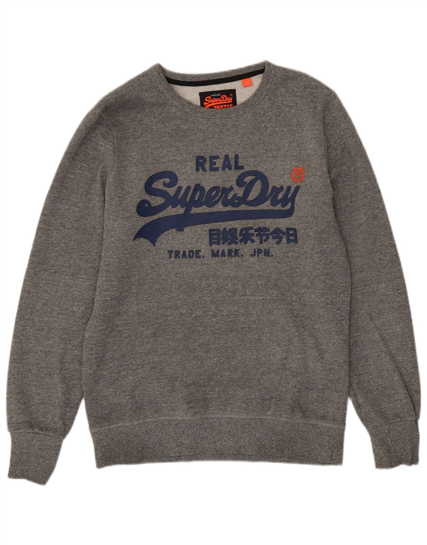 SUPERDRY Herren-Sweatshirt mit grafischem Muster, groß, grau gesprenkelte Baumwolle