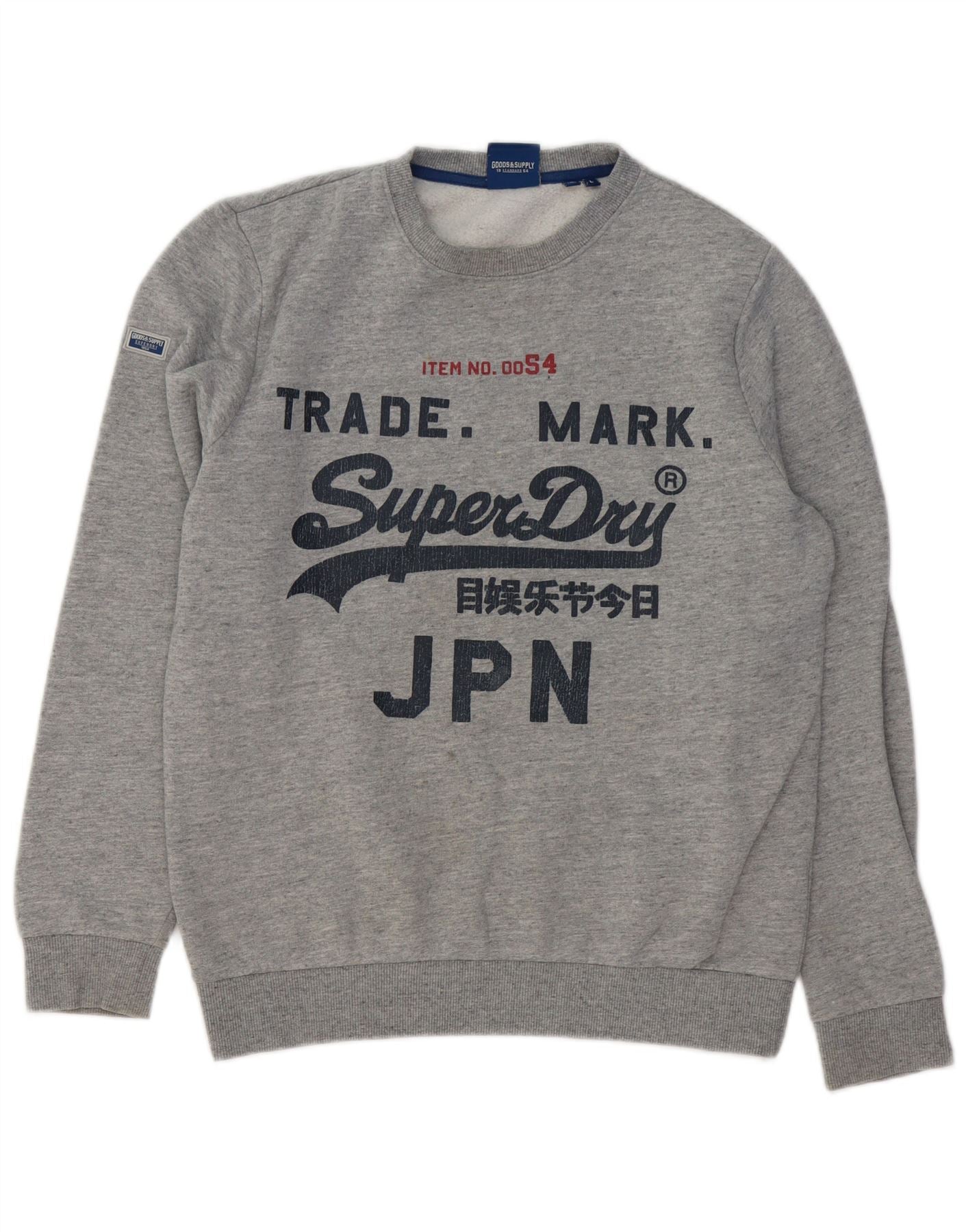 SUPERDRY Herren-Sweatshirt mit grafischem Muster, groß, grau gesprenkelte Baumwolle