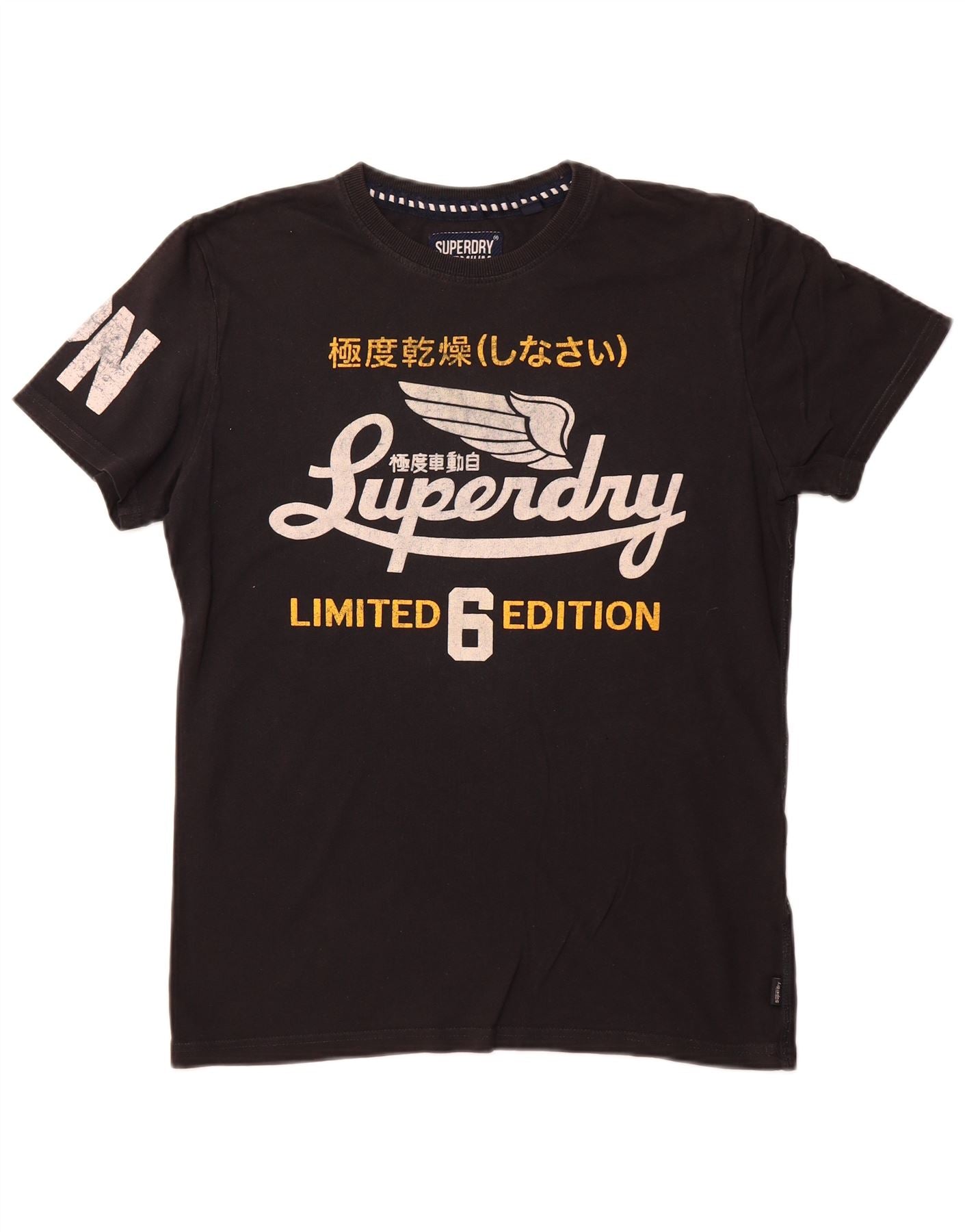SUPERDRY Herren Grafik-T-Shirt-Oberteil aus mittelschwarzer Baumwolle