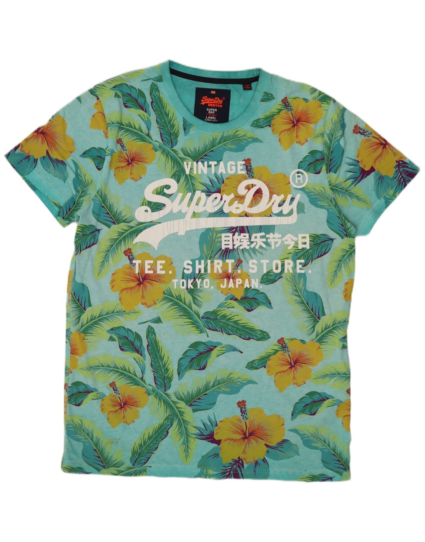 SUPERDRY Herren Grafik-T-Shirt-Oberteil XL aus blauer Baumwolle mit Blumenmuster