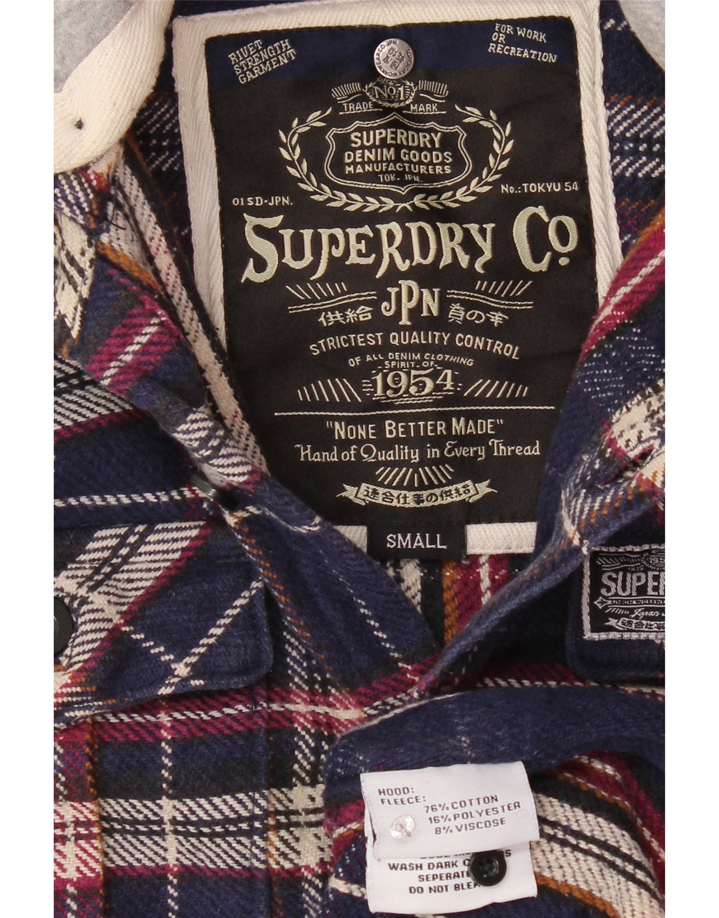 SUPERDRY Herren-Flanellhemd mit Kapuze, klein, marineblau, kariert, Baumwolle