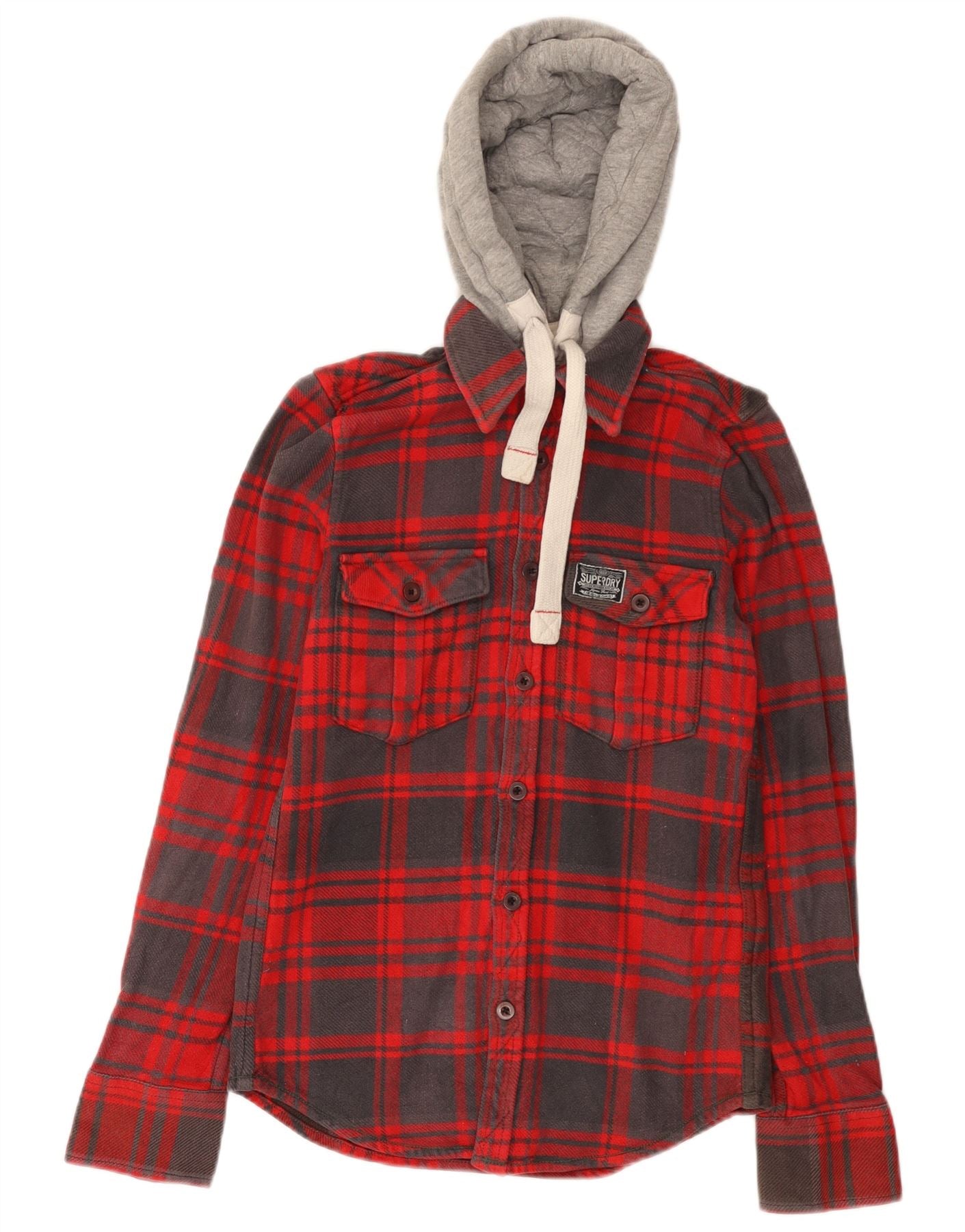 SUPERDRY Herren-Flanellhemd mit Kapuze, klein, rot, kariert, Baumwolle