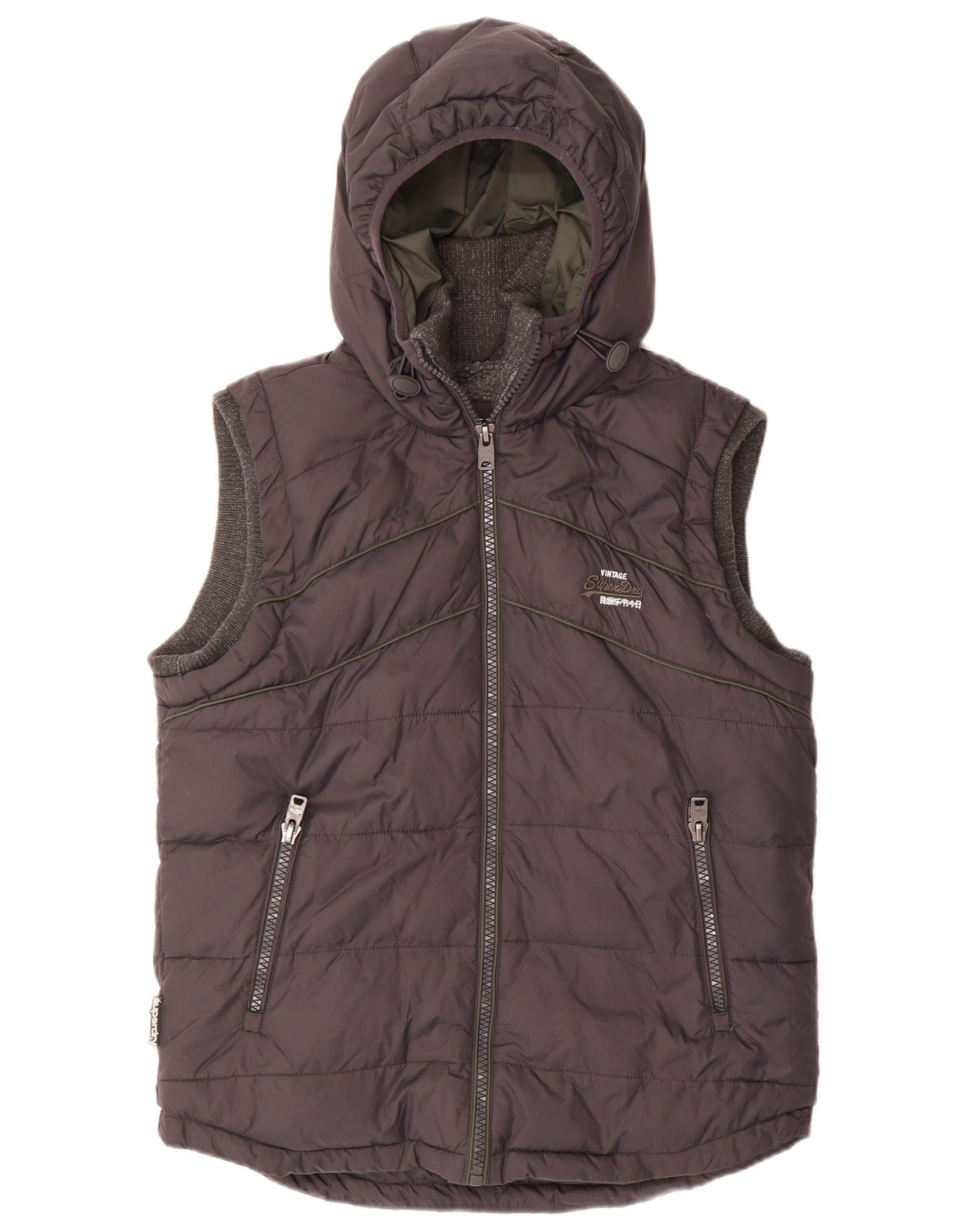 SUPERDRY Wattierte Herren-Weste mit Kapuze, UK 38, mittelmarineblaues Nylon