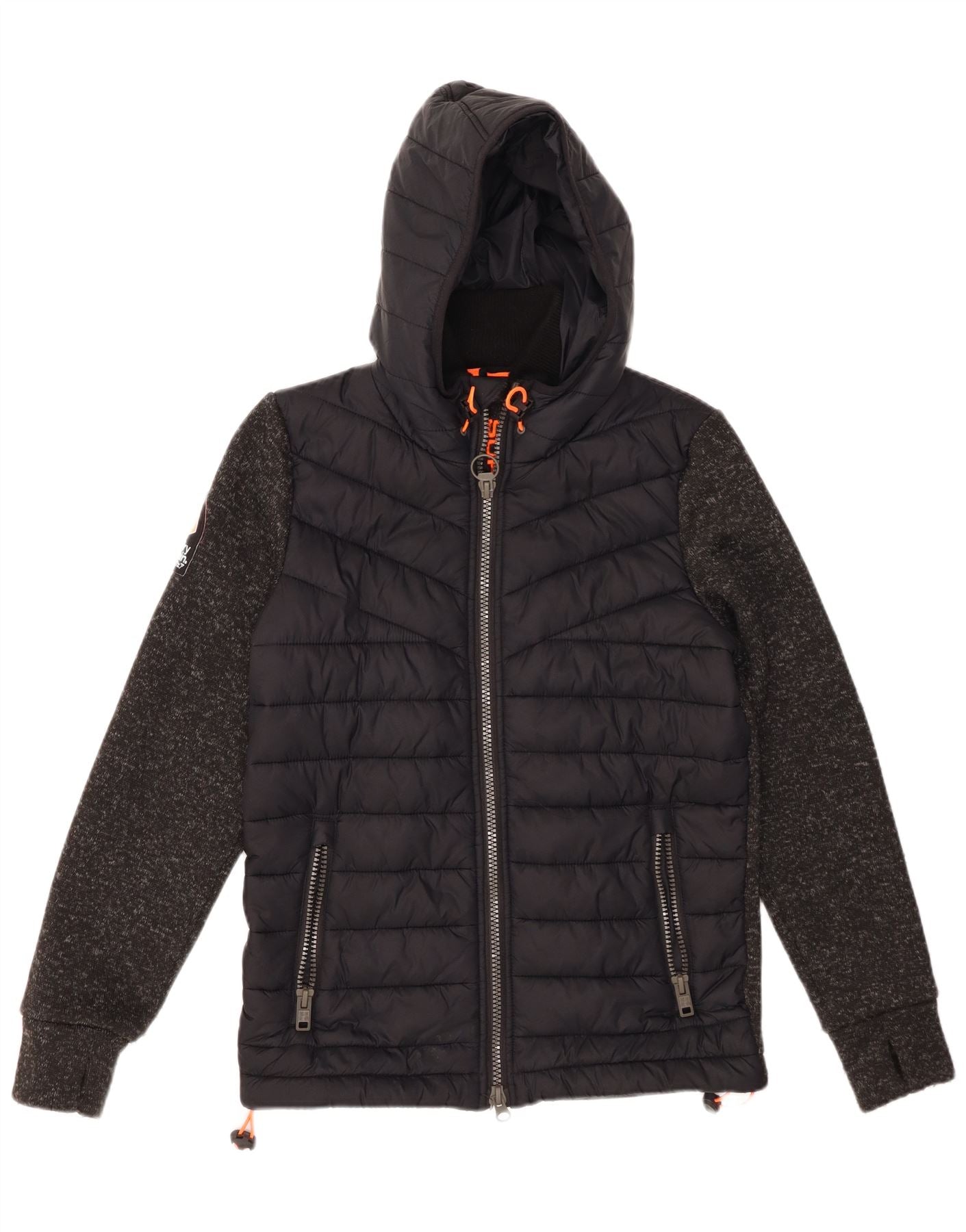 SUPERDRY wattierte Herrenjacke mit Kapuze, UK 38, Mittelschwarzes Colourblock-Nylon