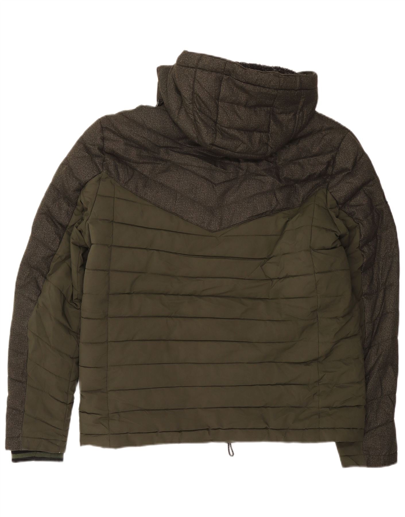SUPERDRY wattierte Herrenjacke mit Kapuze, UK 42, XL, Khaki, Farbblock-Polyester