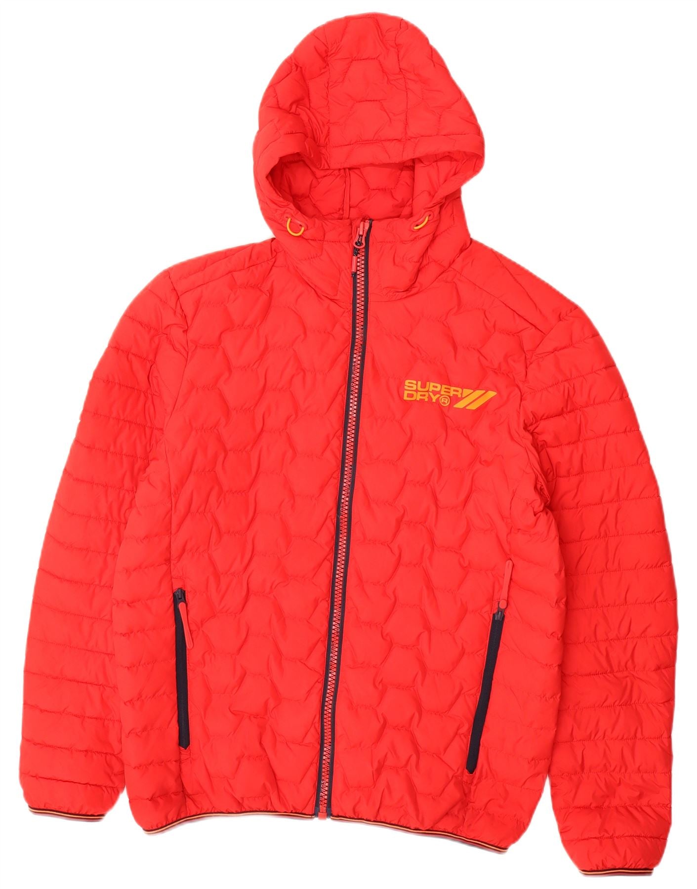 SUPERDRY Mens Hooded Padded Jacket UK 42 XL Red Polyester
