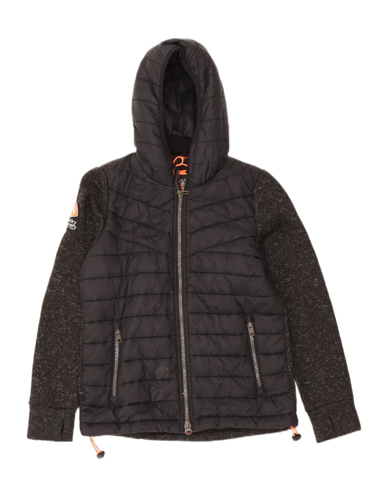 SUPERDRY Mens Hooded Padded Tracksuit Top Jacket UK 42 XL Grey Colourblock