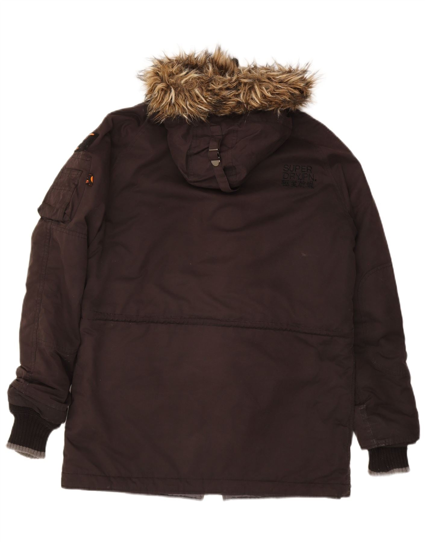 - AI Description: This Superdry mens Parka Jacket is crafted from black microfibre, offering a padded, insulated feel. It features a regular fit and a high neck for warmth. Long sleeves provide full coverage. A zip closure secures the front. The hooded design includes a fur trim accent. Practical pockets and adjustable elements enhance functionality, making it ideal for winter.