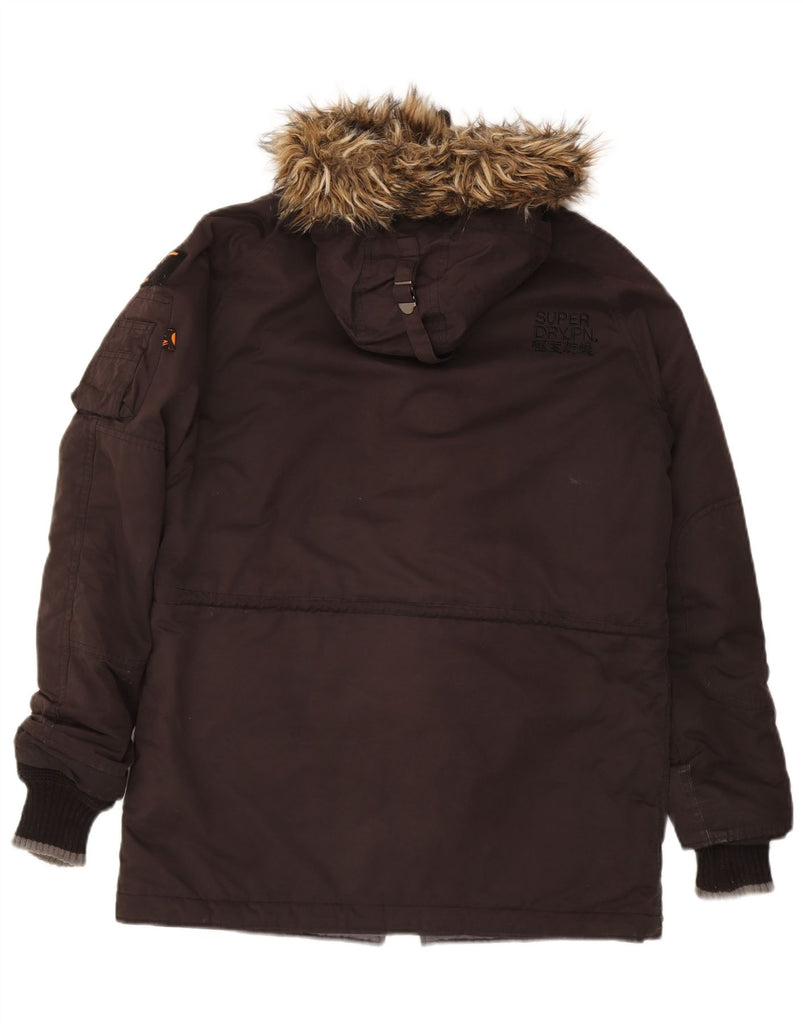 SUPERDRY Mens Hooded Parka Jacket UK 40 Large Black Polyester