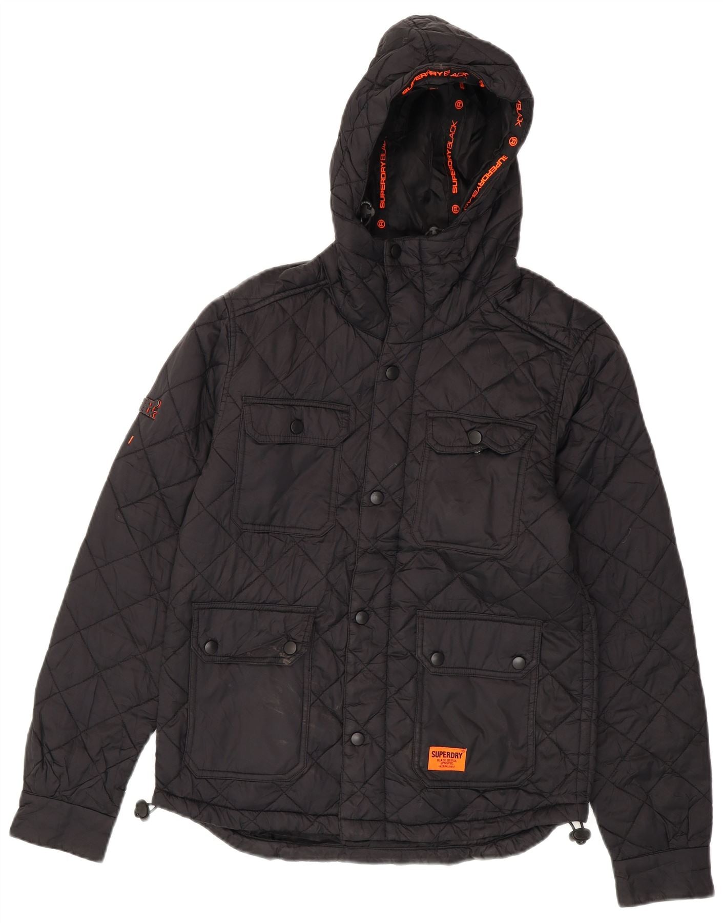 SUPERDRY Herren-Steppjacke mit Kapuze, UK 36, Small, schwarzes Nylon